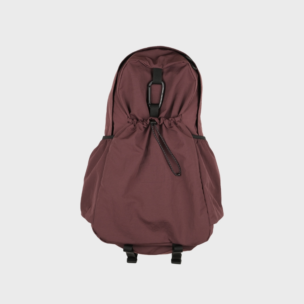 - 리사이클 나일론 70D 원단 - 부드러운 터치감과 나일론 특유의 바스락거림 - 사선 무늬의 텍스처와 은은한 광택감 - 트윌 조직 특유의 밀도 높은 짜임으로 얇지만 뛰어난 내구성 - 발수 가공 처리로 가벼운 생활 방수 가능 - 내부 태블릿 포켓과 메쉬 원단의 투 포켓 구성 - 외부 양 사이드포켓과 전면 스트링 포켓 구성 - 095 > 맥북 14인치 수납 가능 탈부착 가능한 가슴 스트랩에는 위급한 상황에서 사용할 수 있는 휘슬이 부착되어 있습니다. 에메모가든 로고가 각인된 카라비너에는 모자나 소품을 걸어 포인트를 줄 수 있습니다. 전면 스트링 포켓으로 가방을 뒤집어 넣어 패커블 형태로 보관할 수 있습니다. (패커블 시에만 보이는 메인 라벨은 겉면에서 스티치만 보입니다.) let's walk slowly. 색상 Burgundy (짙은 와인빛의 붉은 컬러에 은은하게 브라운도 느껴지는 오묘한 색감)
