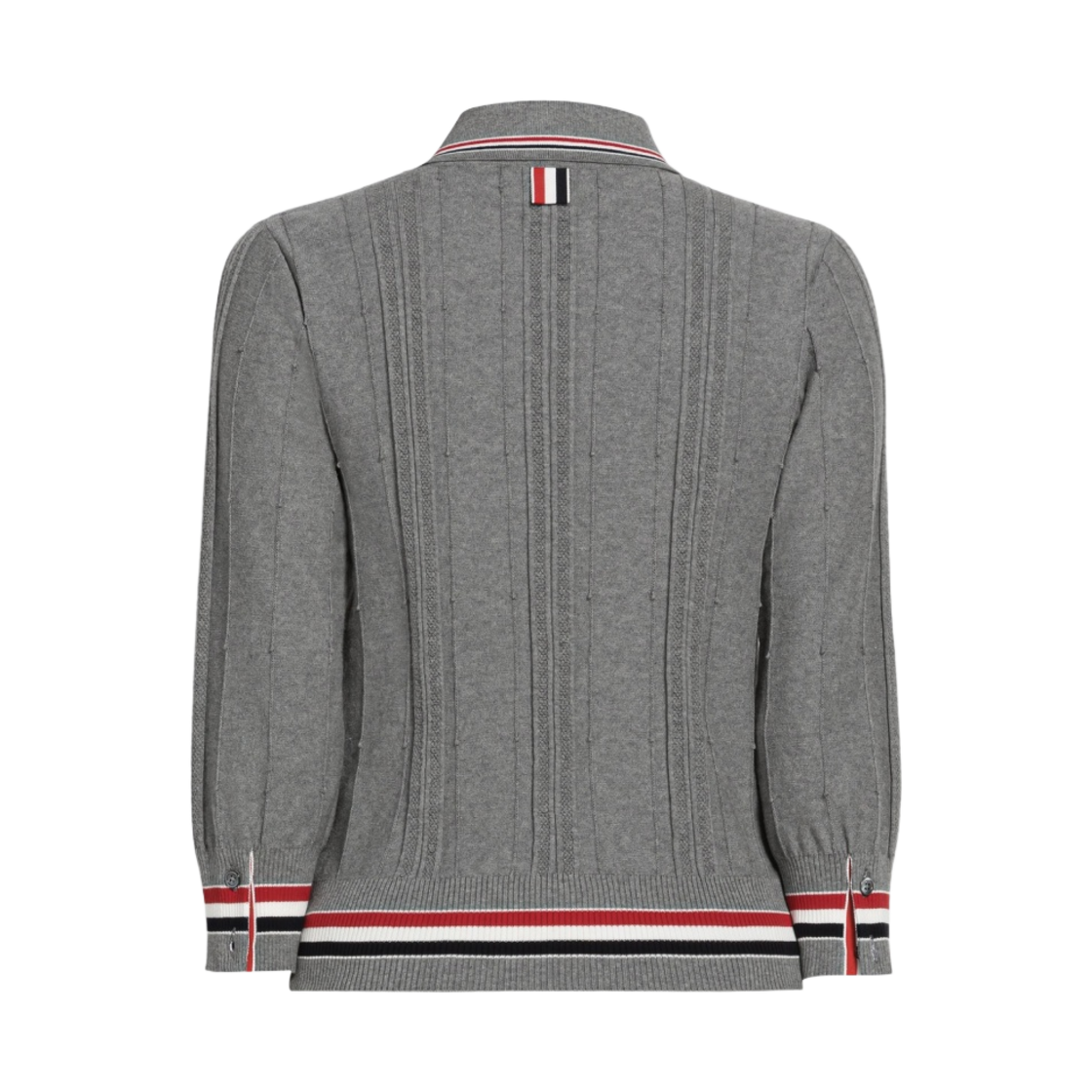 (W) 톰브라운 하이 트위스트 코튼 크리켓 스트라이프 폴로 가디건 라이트 그레이