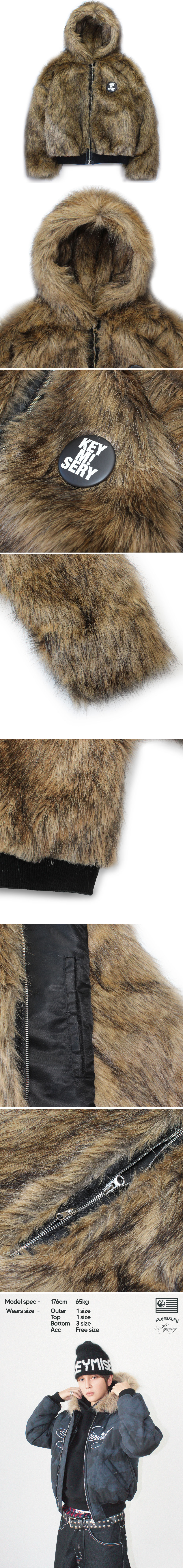 키미저리 오버사이즈 크롭 퍼 자켓 - 브라운