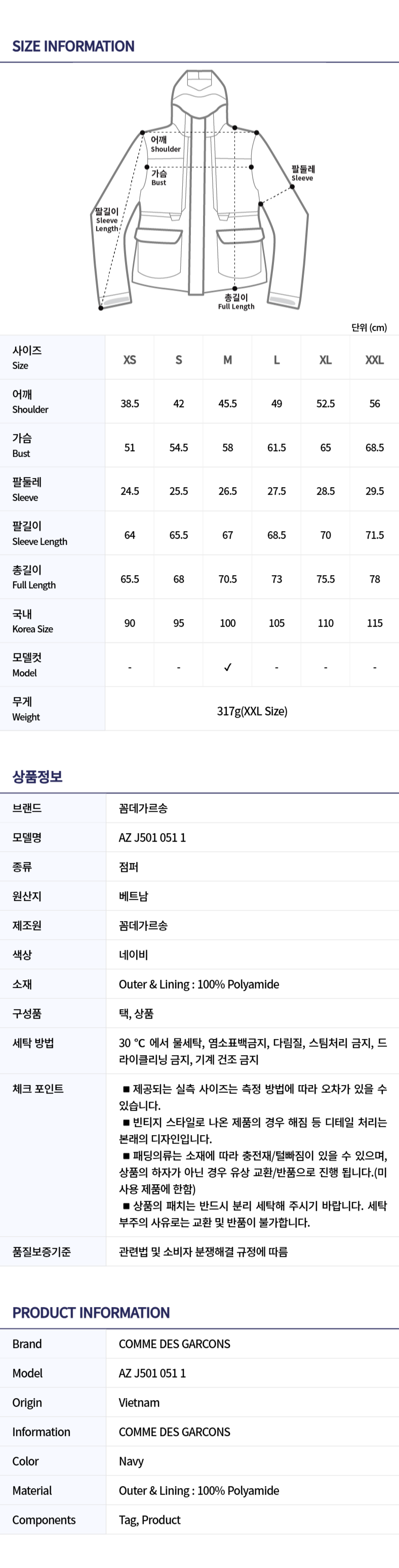 [15% 쿠폰] 플레이 꼼데가르송 x 까웨 풀 집 자켓 네이비