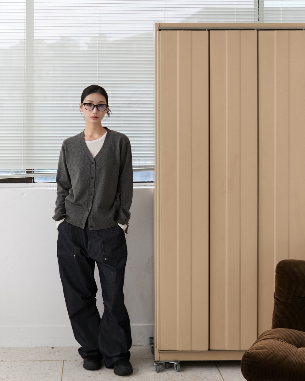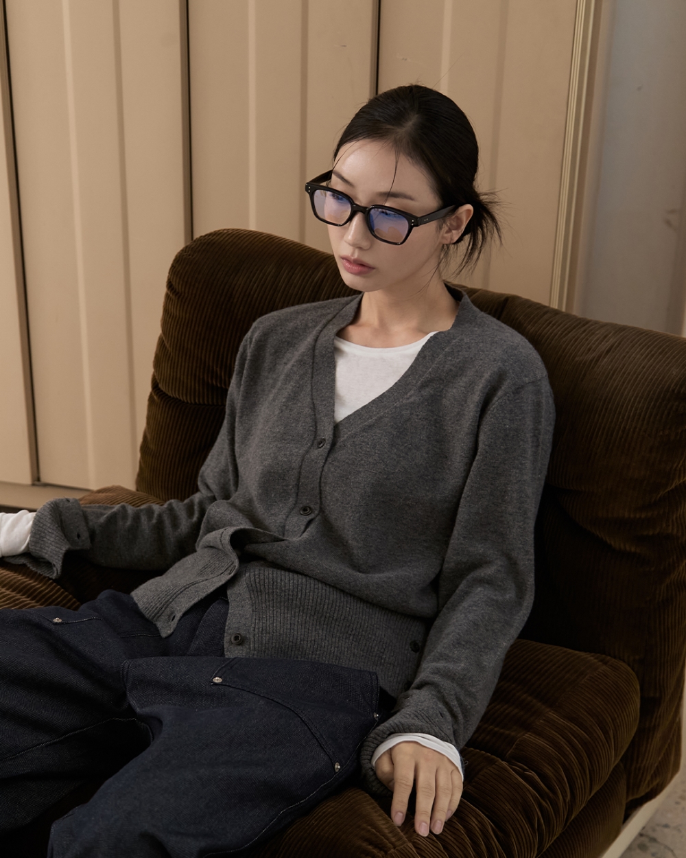블루 선플라워 블룸 램스 울 가디건 멜란지 그레이
