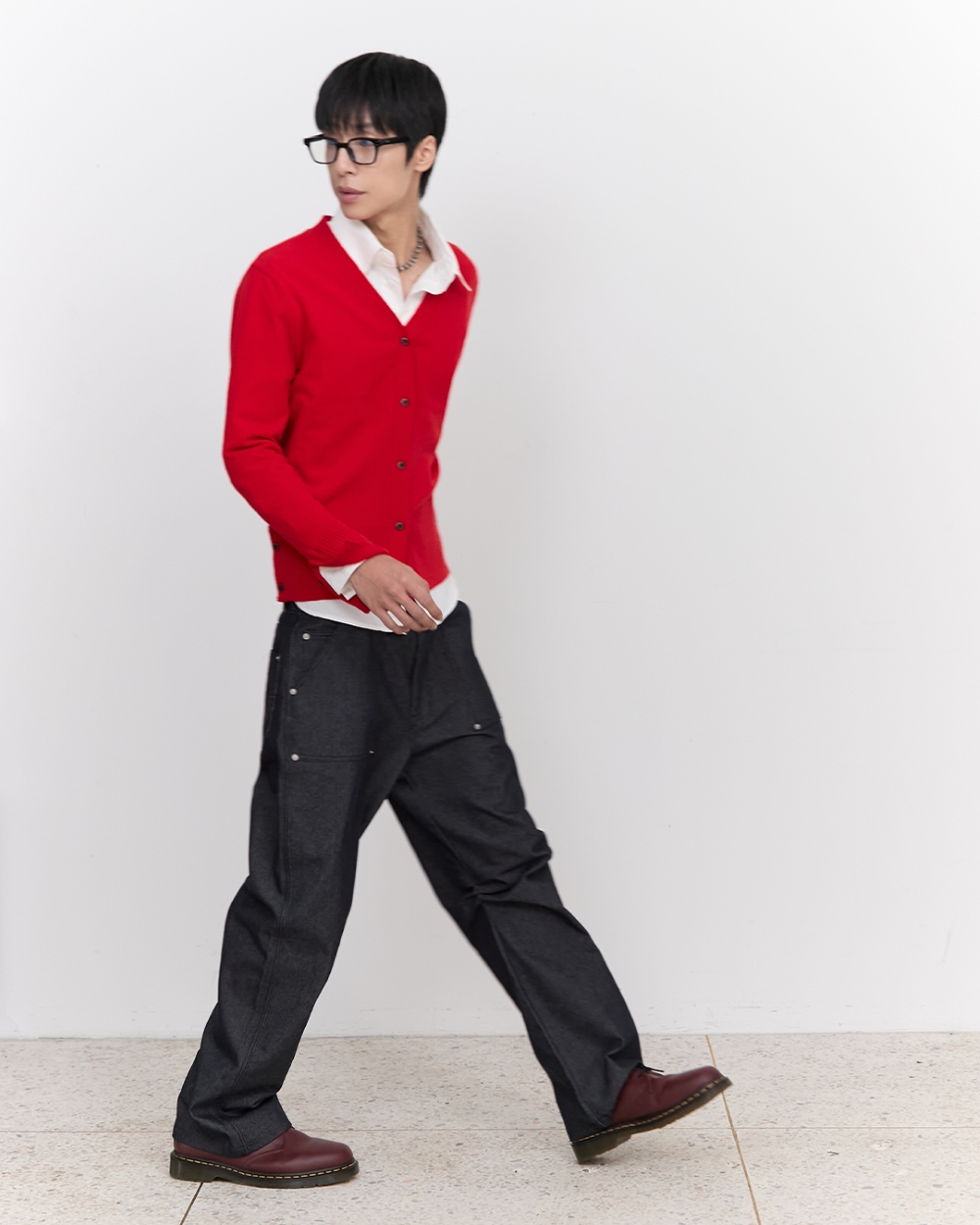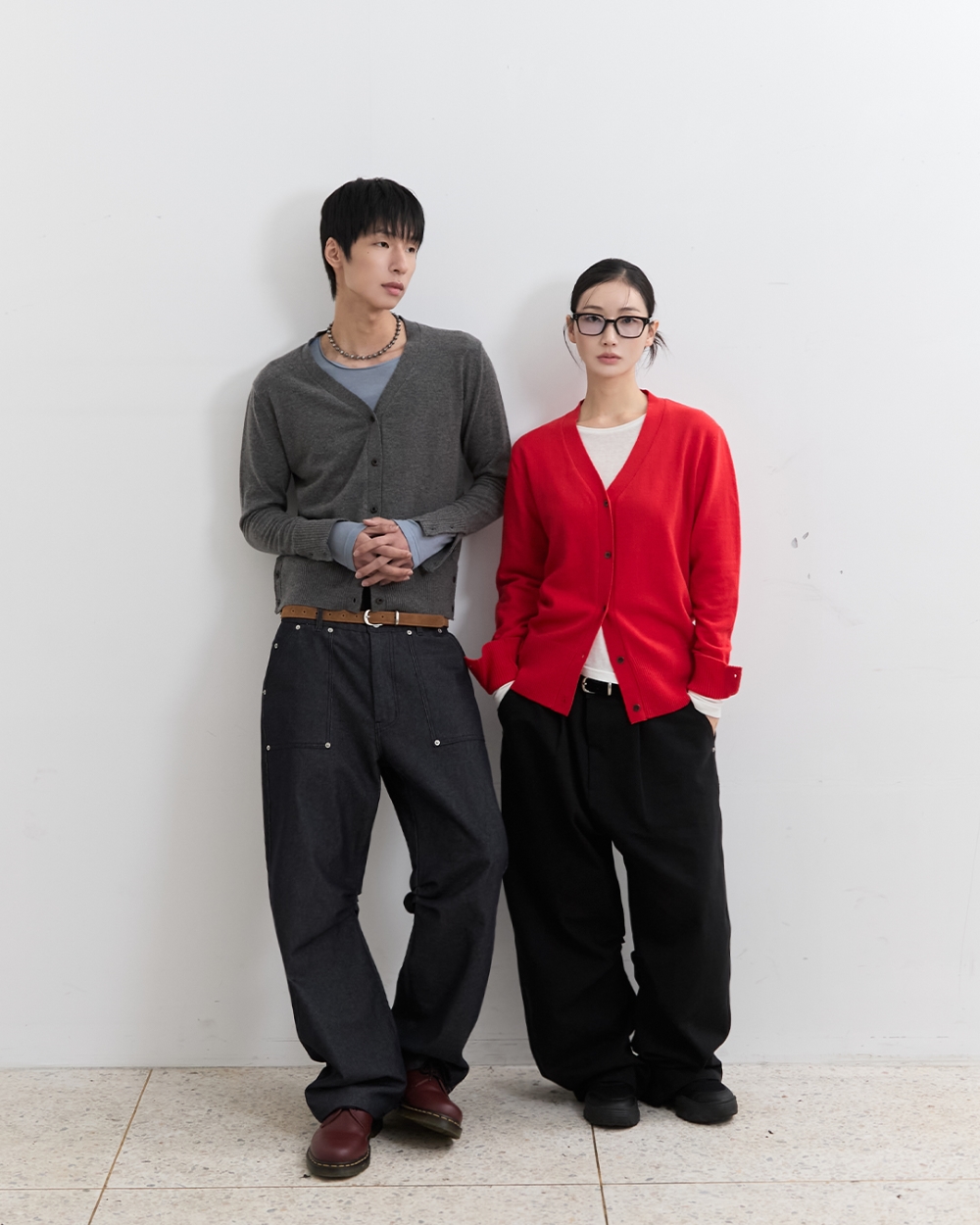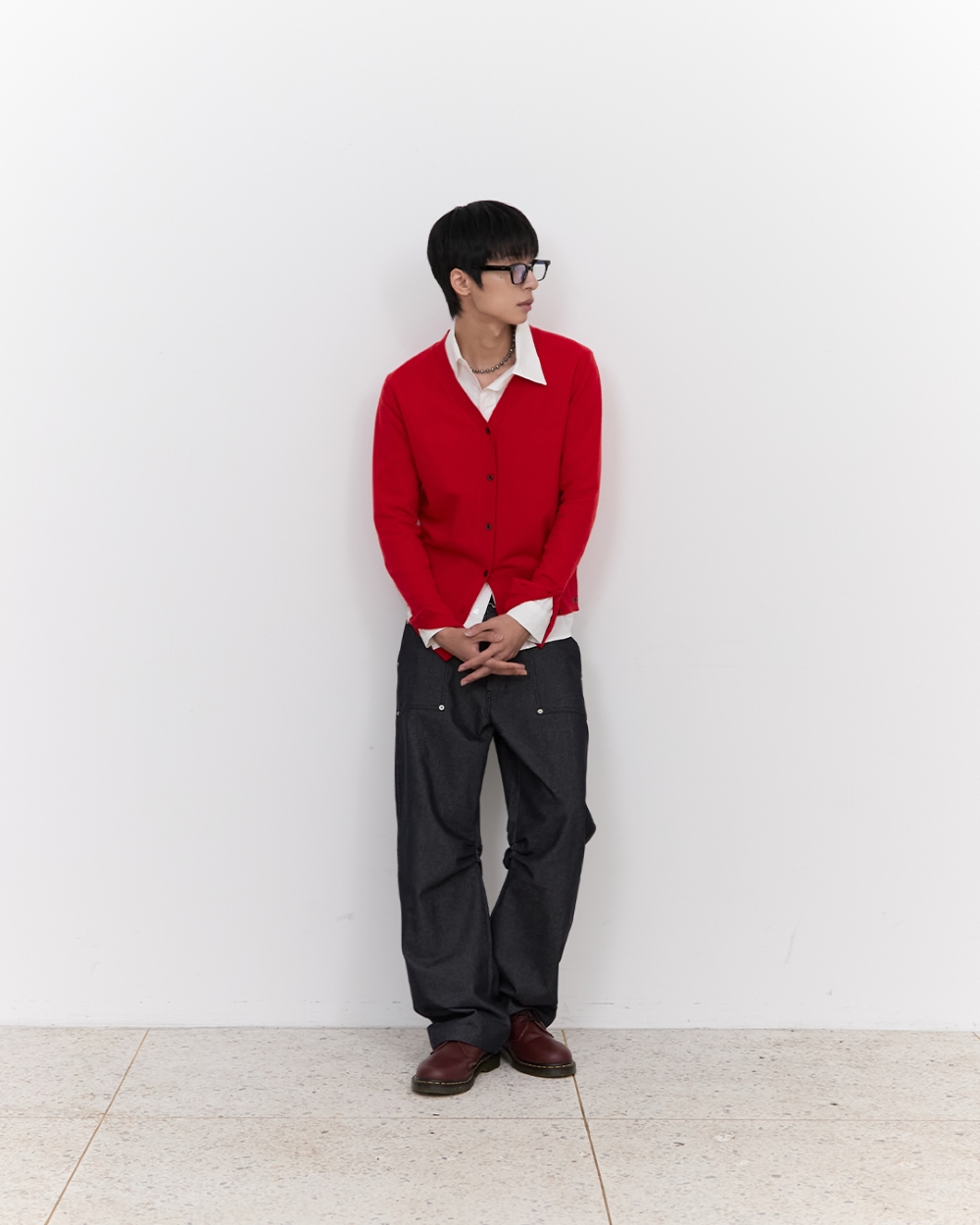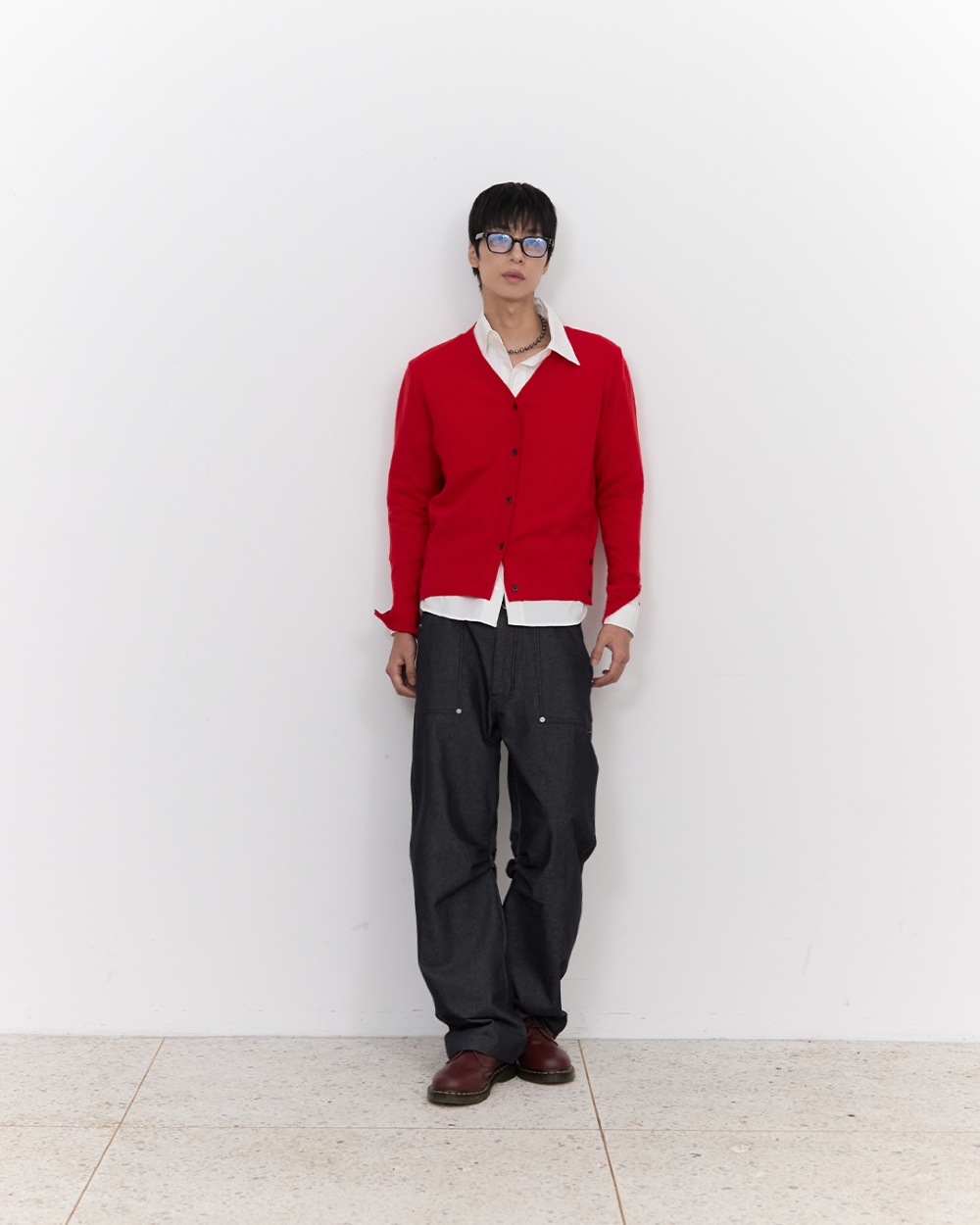 블루 선플라워 블룸 렘스 울 가디건 레드