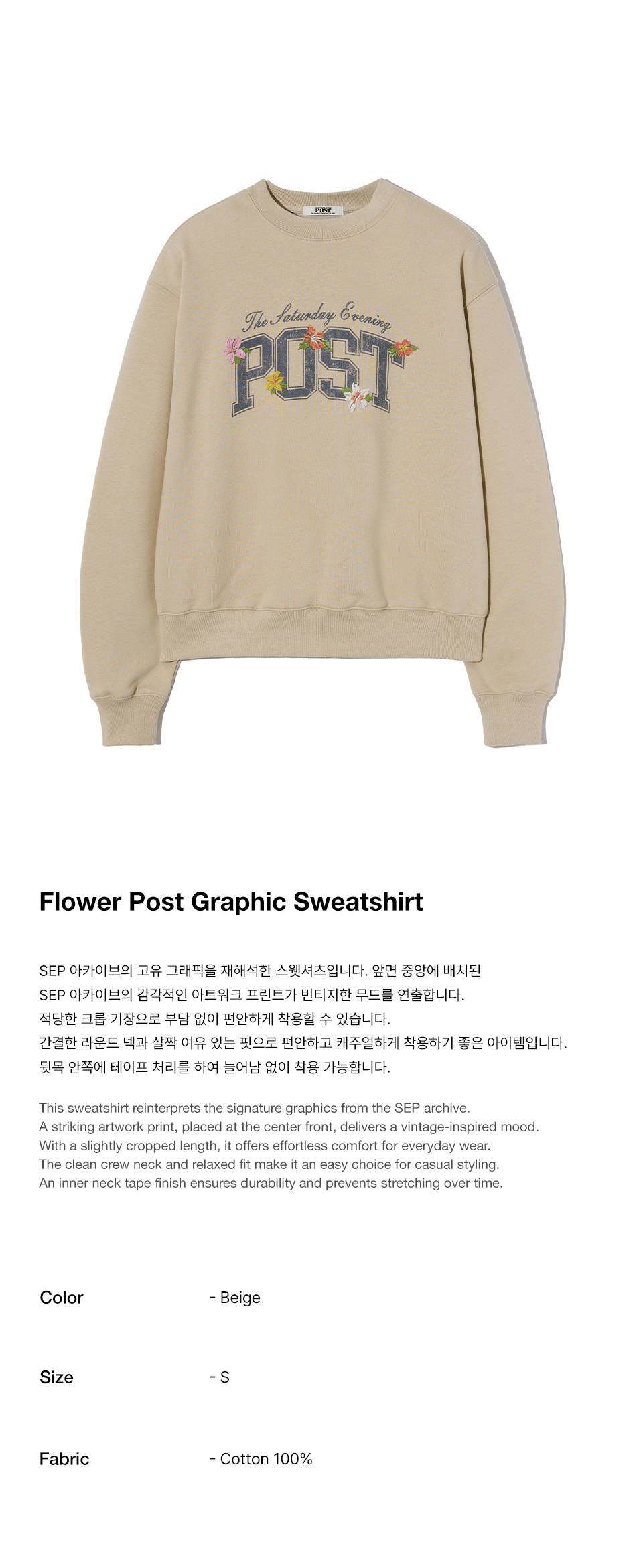 더 새터데이 이브닝 포스트 플라워 포스트 그래픽 스웨트셔츠 베이지