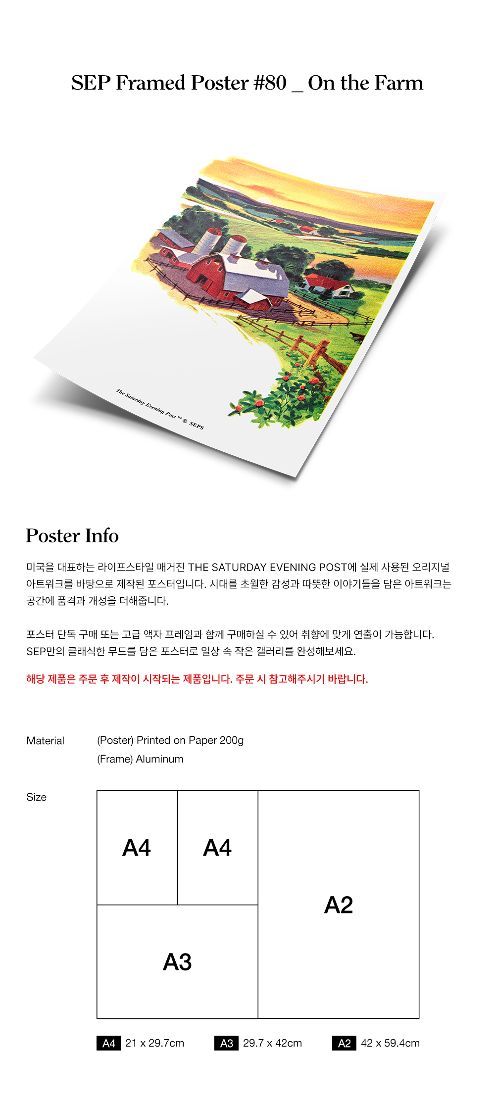더 새터데이 이브닝 포스트 프레임 포스터 농장 풍경 A2