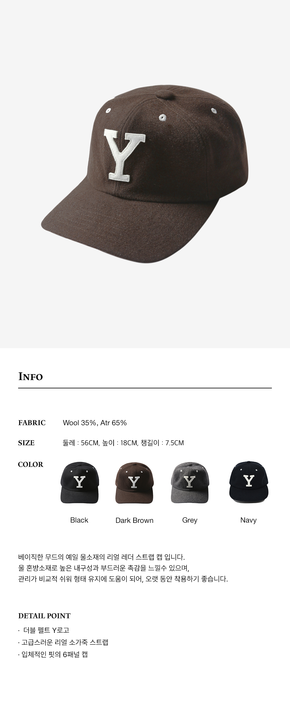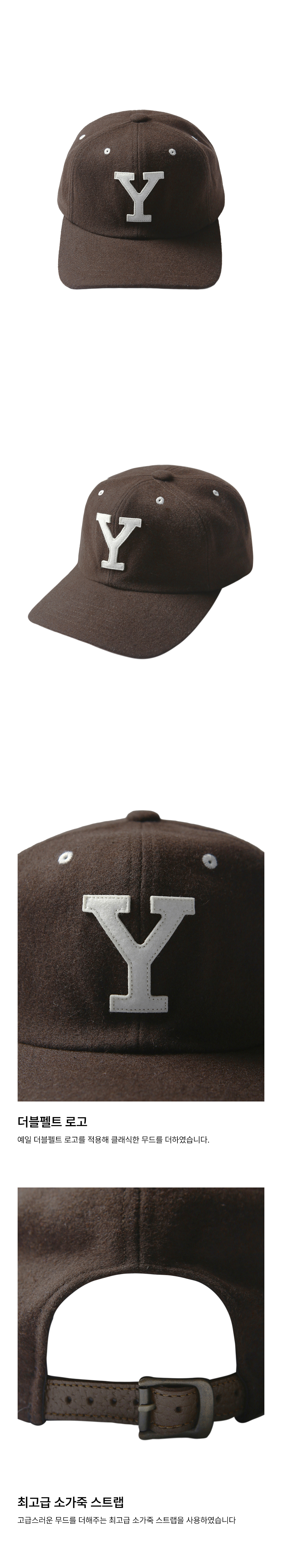 예일 울 레더 스트랩 캡 다크브라운