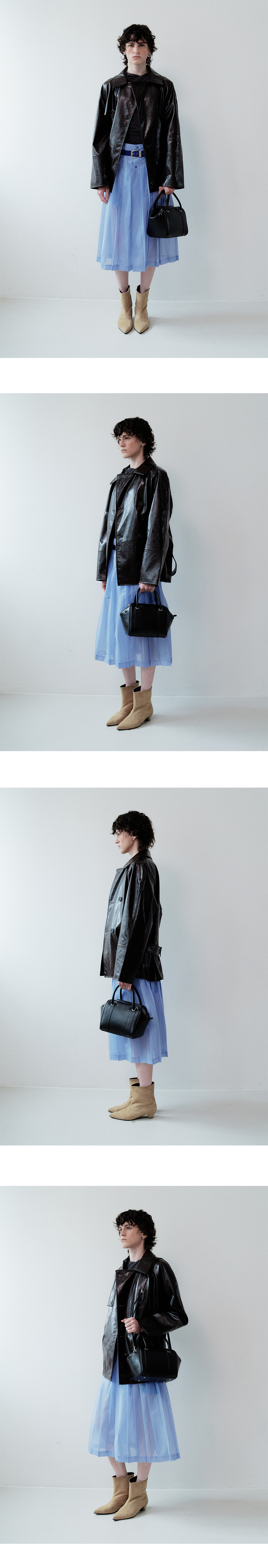 이태리 풀업 가죽으로 제작된 커들백은 시간이 지날수록 더욱 깊이 있는 질감을 만들어내는 매력을 지니고 있습니다. 부드럽고 쫀득한 촉감이 손에 자연스럽게 감기며, 중앙으로 살짝 흐르는 듯한 실루엣이 세련된 여유로움을 더합니다. 컴팩트한 사이즈이지만 내부 공간 활용이 뛰어나, 데일리 백으로 손색이 없습니다. 토트와 크로스로 모두 연출 가능해 스타일링에 따라 다양한 무드를 완성할 수 있으며, 은은한 광택과 유연한 구조감은 오래도록 함께할 수 있는 가치를 담고 있습니다.