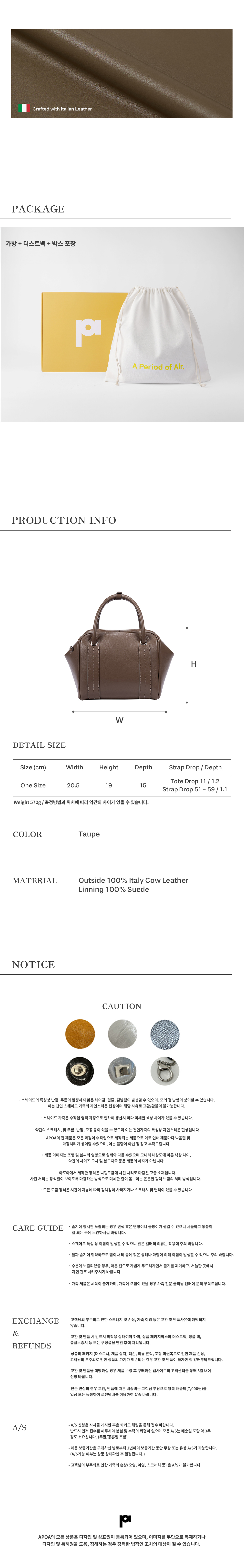 이태리 풀업 가죽으로 제작된 커들백은 시간이 지날수록 더욱 깊이 있는 질감을 만들어내는 매력을 지니고 있습니다. 부드럽고 쫀득한 촉감이 손에 자연스럽게 감기며, 중앙으로 살짝 흐르는 듯한 실루엣이 세련된 여유로움을 더합니다. 컴팩트한 사이즈이지만 내부 공간 활용이 뛰어나, 데일리 백으로 손색이 없습니다. 토트와 크로스로 모두 연출 가능해 스타일링에 따라 다양한 무드를 완성할 수 있으며, 은은한 광택과 유연한 구조감은 오래도록 함께할 수 있는 가치를 담고 있습니다.