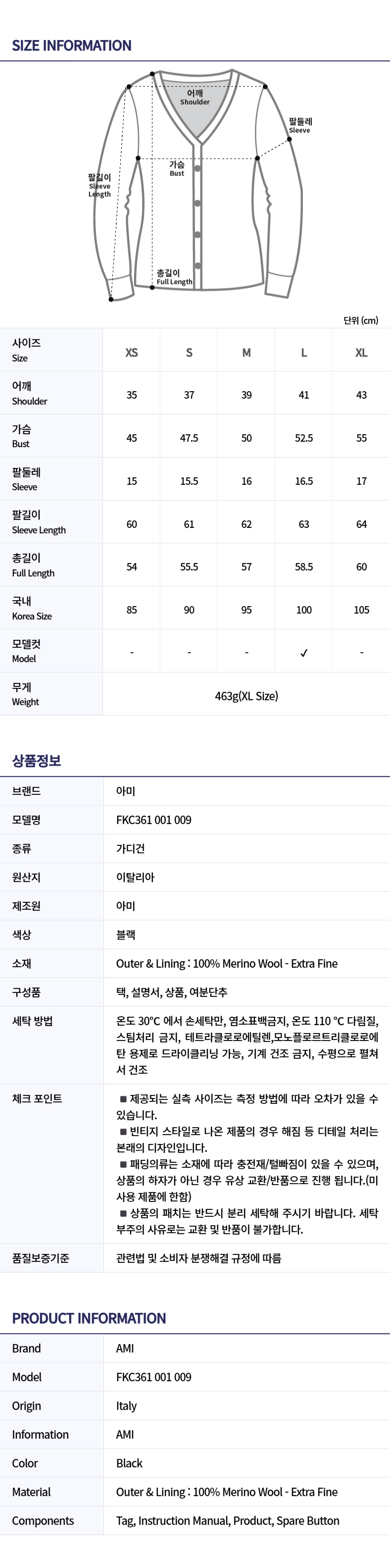 [15% 쿠폰] (W) 아미 가디건 블랙