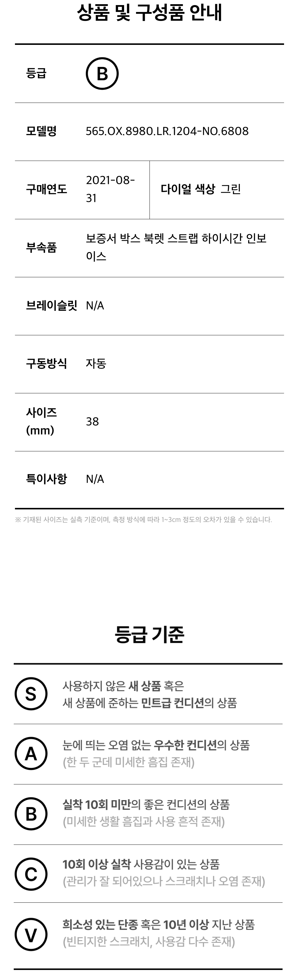 위블로 클래식퓨전 38-565.OX.8980.LR.1204 베젤다이아 그린 바 NO.6808