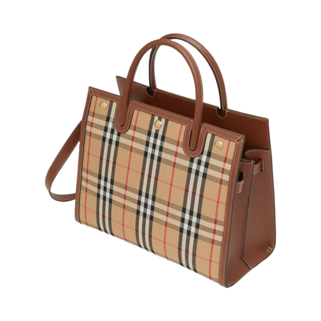 버버리 미니 빈티지 체크 투핸들 타이틀백 아카이브 베이지