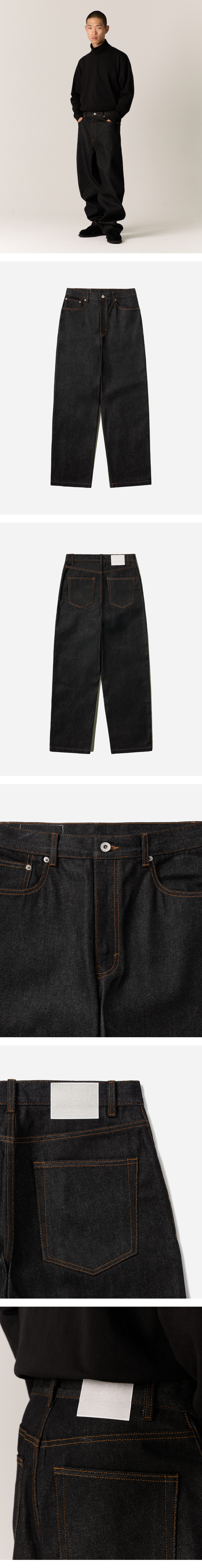 • Relaxed fit • 5-pocket jeans • Back yoke • Paper patch on back waist • 13oz selvedge denim fabric • 100% Cotton • Shrinkage (3-4%) may occur after washing • color fading and bleeding may occur • Model is wearing size 3 (183cm) • 인디고 염료가 사용되는 셀비지 데님 소재 특유의 단단한 질감, 이염이 있을 수 있습니다. • 비교적 편안한 착용감을 원하시는 경우 찬물에 가볍게 헹군 뒤 그늘에서 자연건조 하십시오.