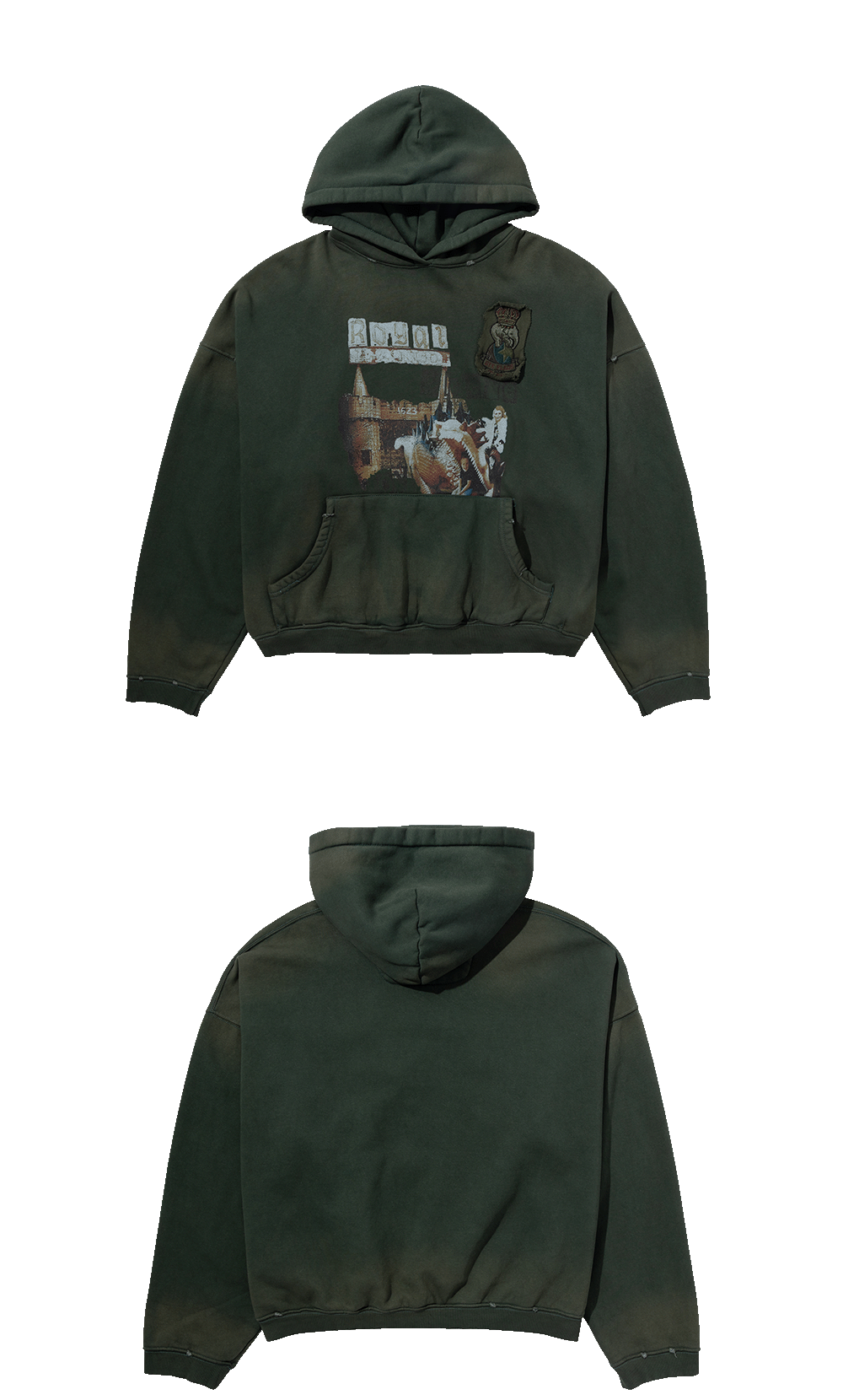 언더마이카 25FW 포가튼 카니발 콜라주 빈티지 후디 더스티 에메랄드