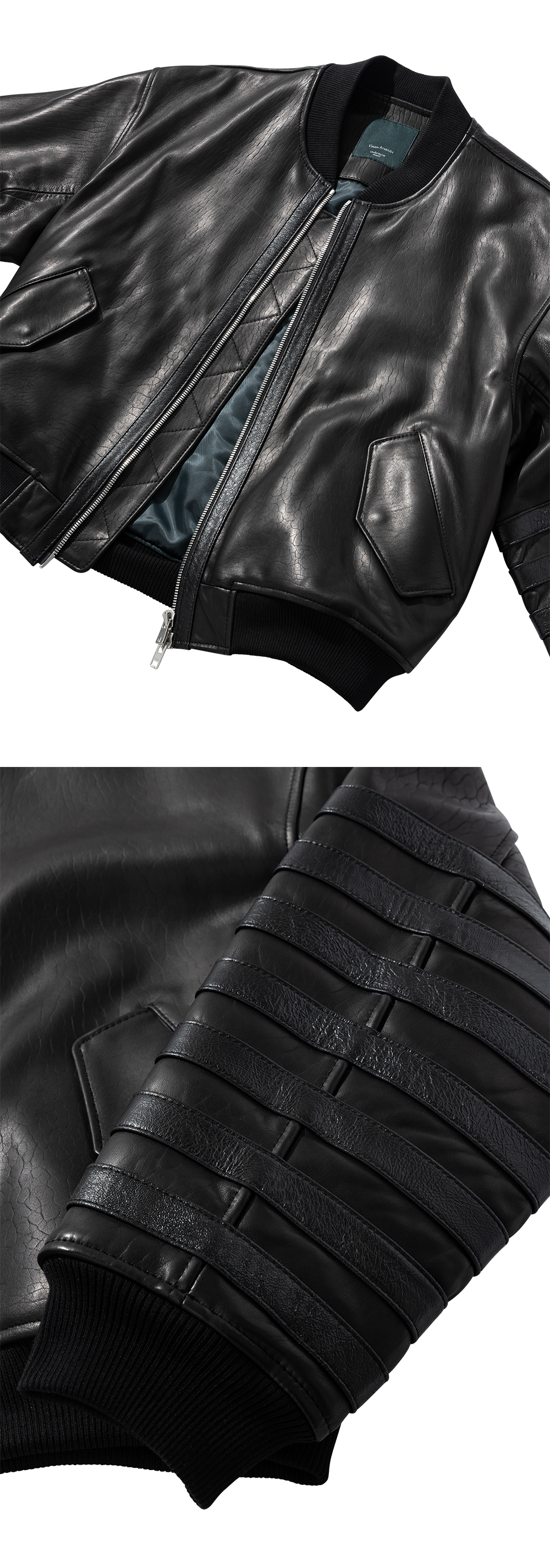 ✧ AI로 제작된 콘텐츠가 포함되었습니다 7개의 가죽 링으로 마감된 가죽 봄버로, 양가죽으로 제작되었습니다.