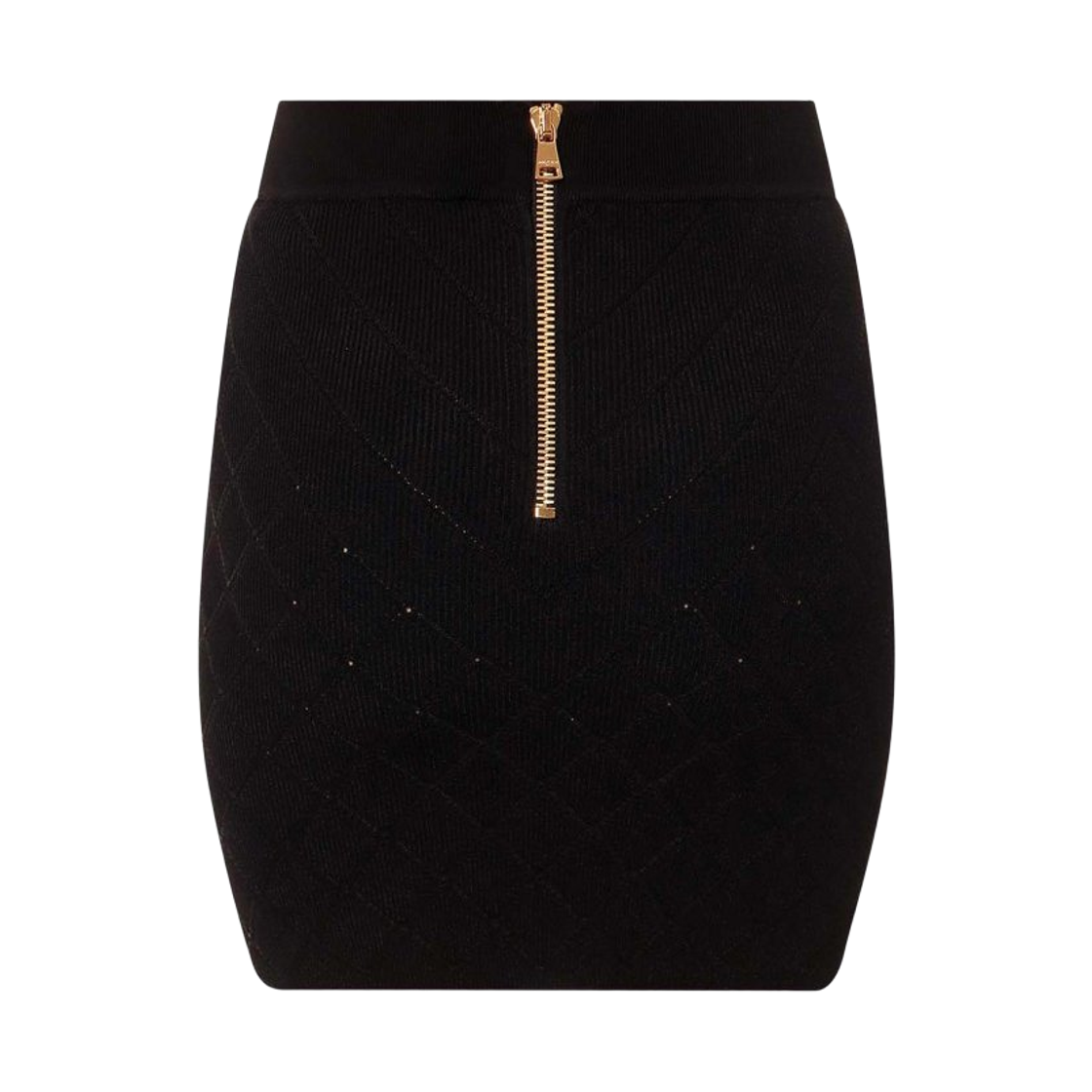 (W) Balmain Knit Skirt with Rhombus Motif Black