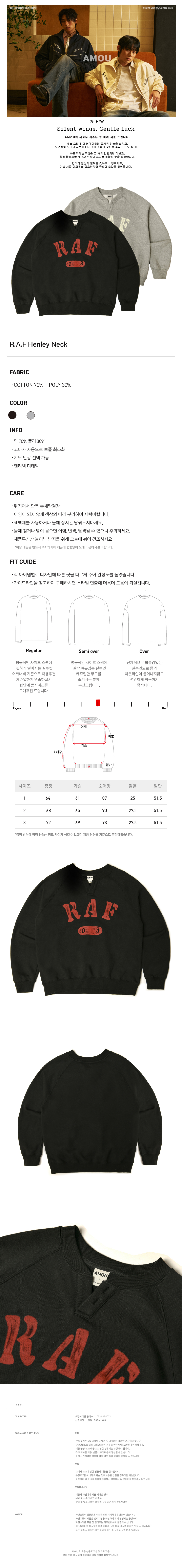 아모우 R.A.F 헨리넥 스웻 셔츠 블랙