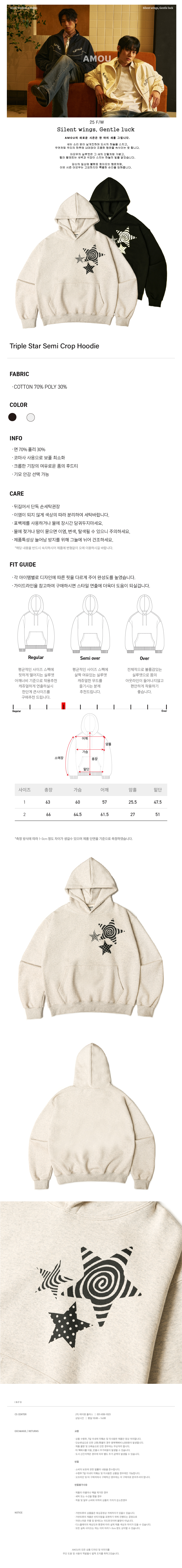 아모우 트리플 스타 세미 크롭 후드 크림 멜란지