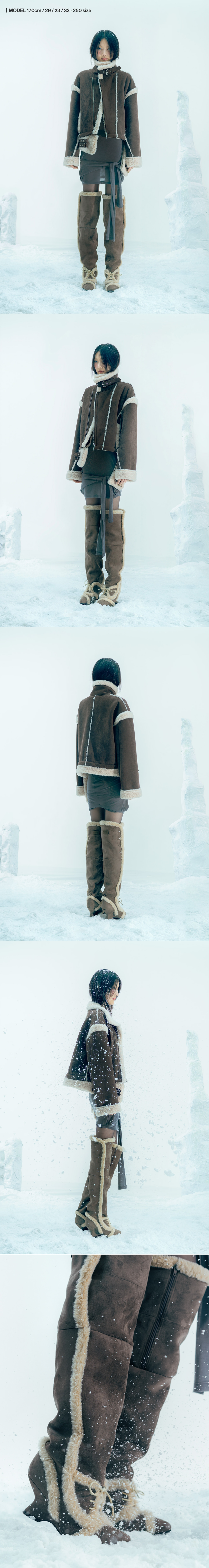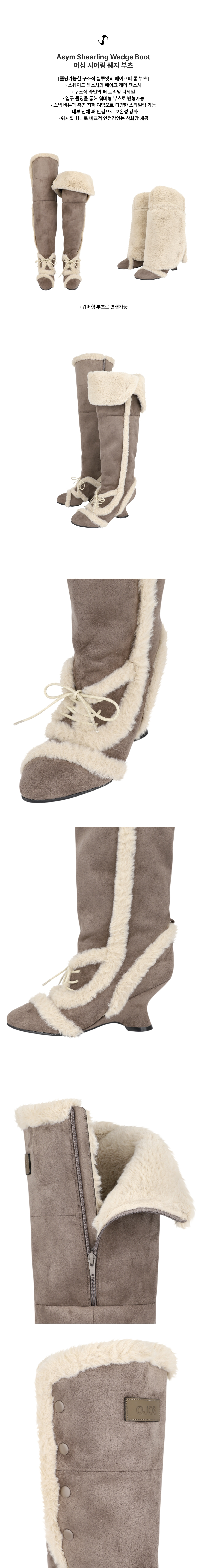 폴딩가능한 구조적 실루엣의 페이크퍼 롱 부츠 | 스웨이드 텍스처의 페이크 레더 텍스처 | 구조적 라인의 퍼 트리밍 디테일 | 스냅 버튼과 측면 지퍼 여밈으로 다양한 스타일링 가능 | 입구 폴딩을 통해 워머형 부츠로 변형가능 | 내부 전체 퍼 안감으로 보온성 강화 | 전면 레이스업 | 비정형적인 웨지 쉐입 | 웨지힐 형태로 비교적 안정감있는 착화감 제공상세설명 참조