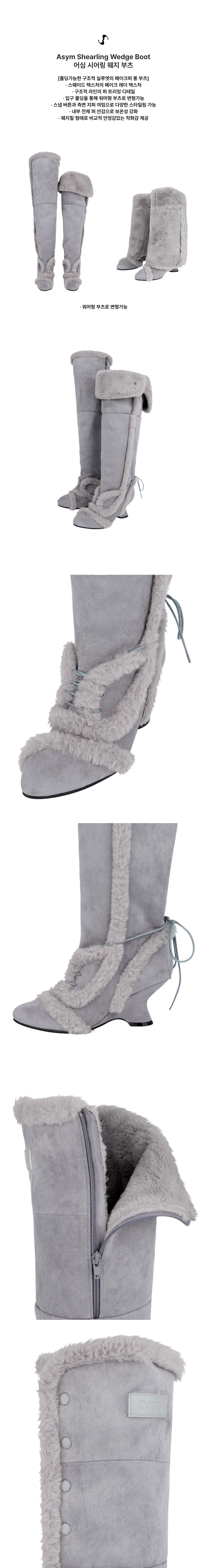 폴딩가능한 구조적 실루엣의 페이크퍼 롱 부츠 | 스웨이드 텍스처의 페이크 레더 텍스처 | 구조적 라인의 퍼 트리밍 디테일 | 스냅 버튼과 측면 지퍼 여밈으로 다양한 스타일링 가능 | 입구 폴딩을 통해 워머형 부츠로 변형가능 | 내부 전체 퍼 안감으로 보온성 강화 | 전면 레이스업 | 비정형적인 웨지 쉐입 | 웨지힐 형태로 비교적 안정감있는 착화감 제공