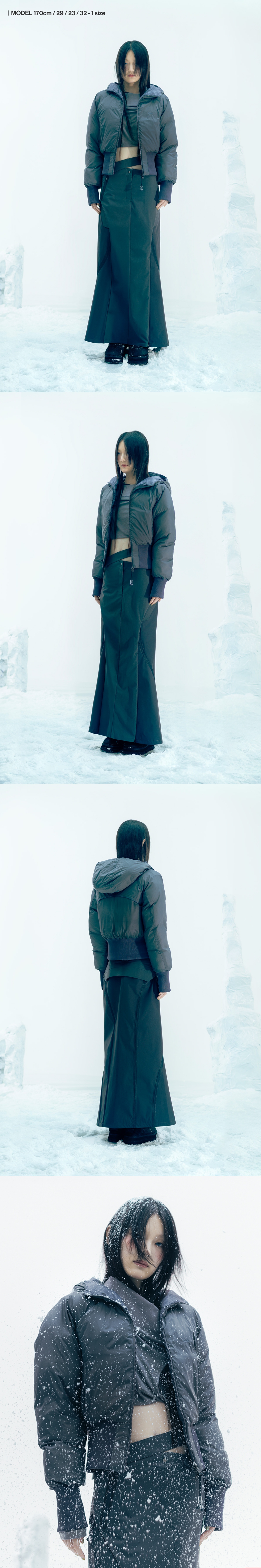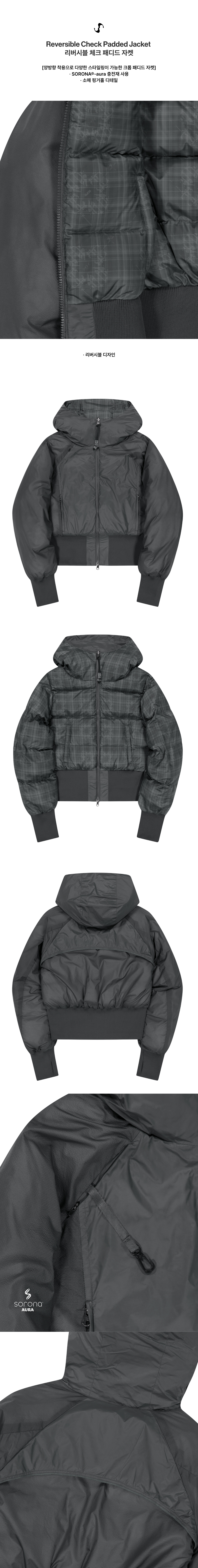 양방향 착용으로 다양한 스타일링이 가능한 크롭 패디드 자켓 | 크롭 핏 | 가벼움과 보온성에 탁월한 충전재 SORONA®-aura 사용 | 소매 핑거홀 디테일 | 전면에 YKK 1-way 양면지퍼 마감 A면 | 전면 OJOS 로고 자수 | 가슴 포켓 YKK CONCEAL® 지퍼 마감 B면 | OJOS 패턴 디테일 | 퀼팅라인 마감
