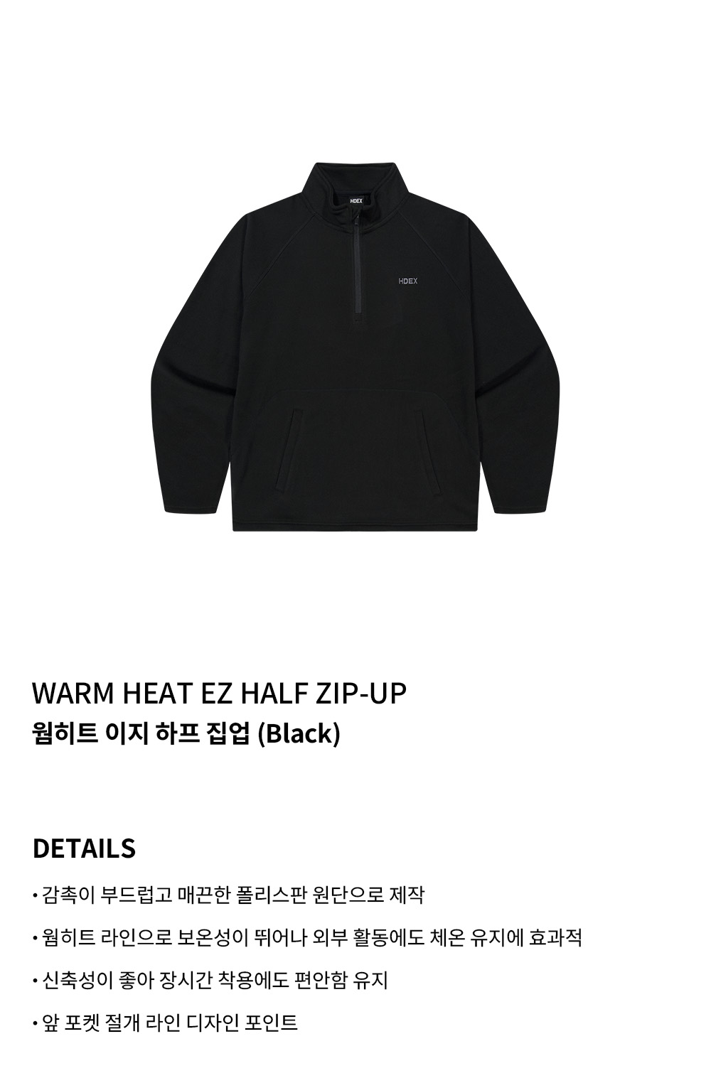 에이치덱스 웜히트 이지 하프 집업 블랙