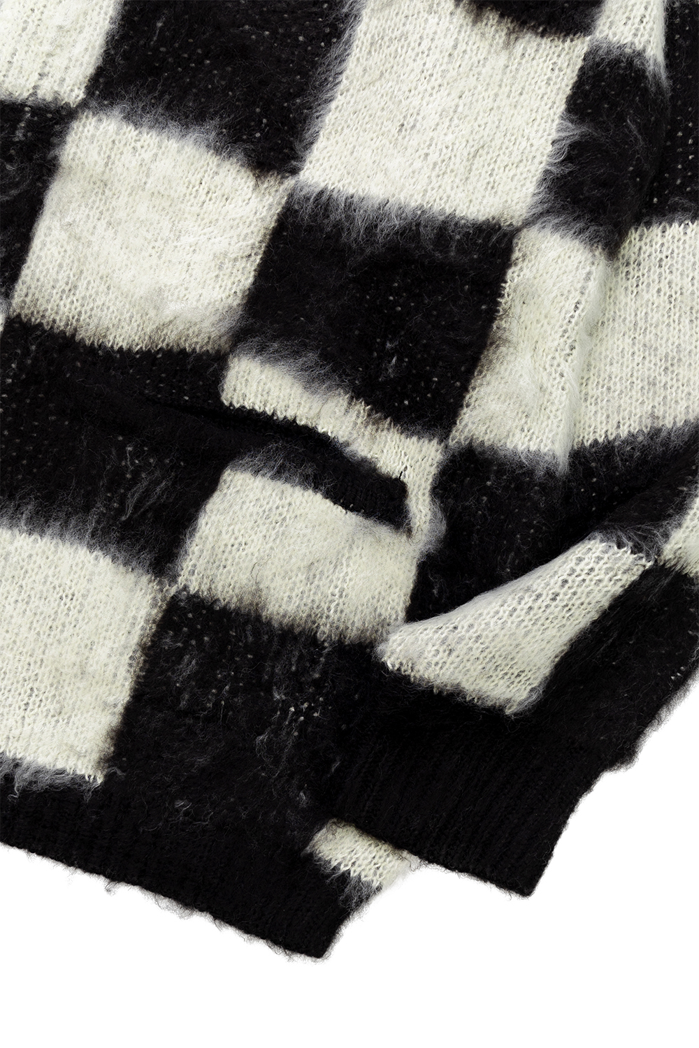Houston Japan UNIVERD72 Mohair Touch Cardigan Checkerd Flag Black 22330