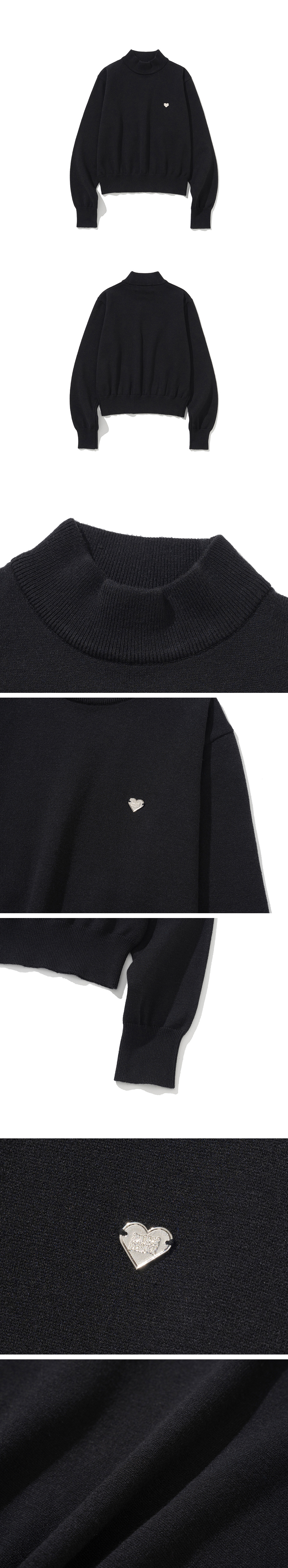 니티드 베이직 에센셜 워셔블 하프 폴라 니트 우먼 블랙