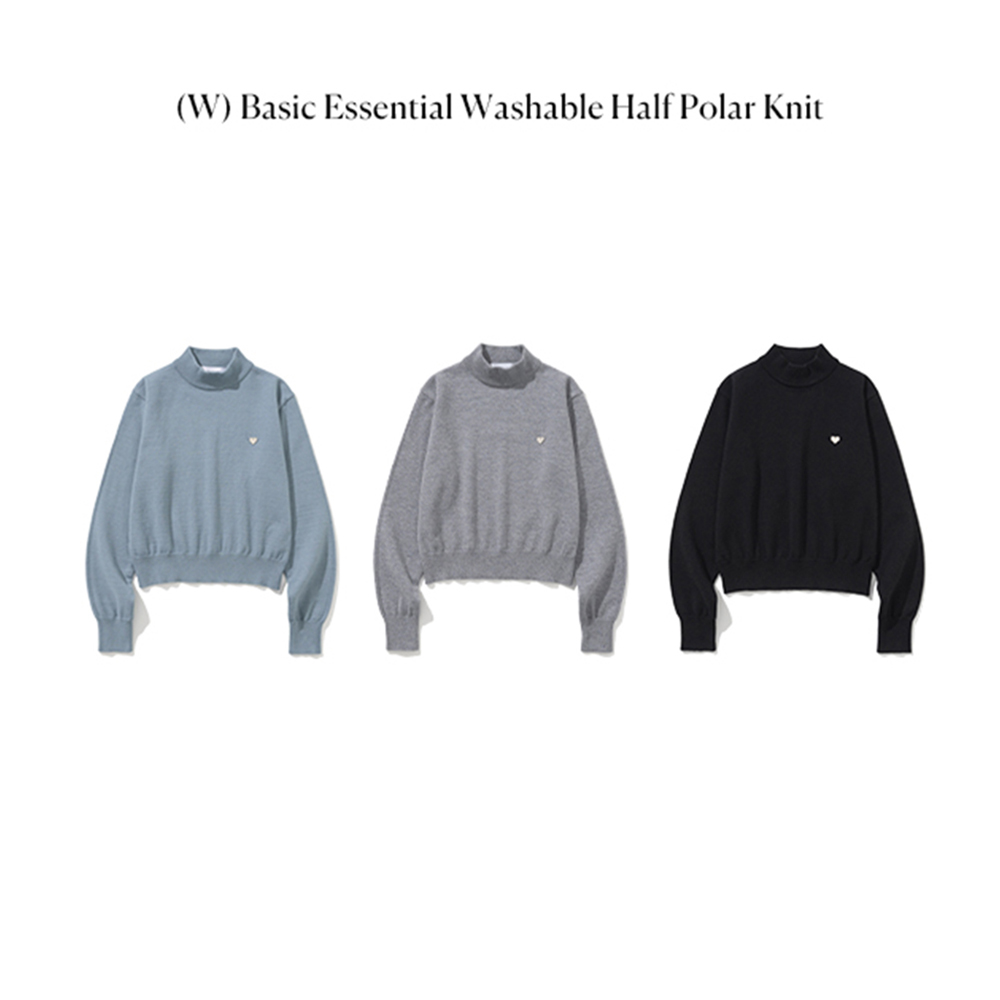 니티드 베이직 에센셜 워셔블 하프 폴라 니트 스톤 우먼 블루