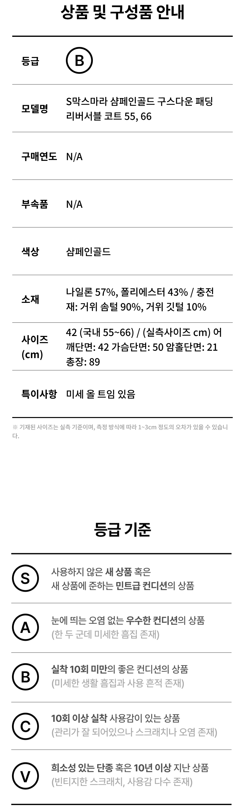 막스마라 샴페인골드 구스다운 패딩 리버서블 후드 코트 55, 66