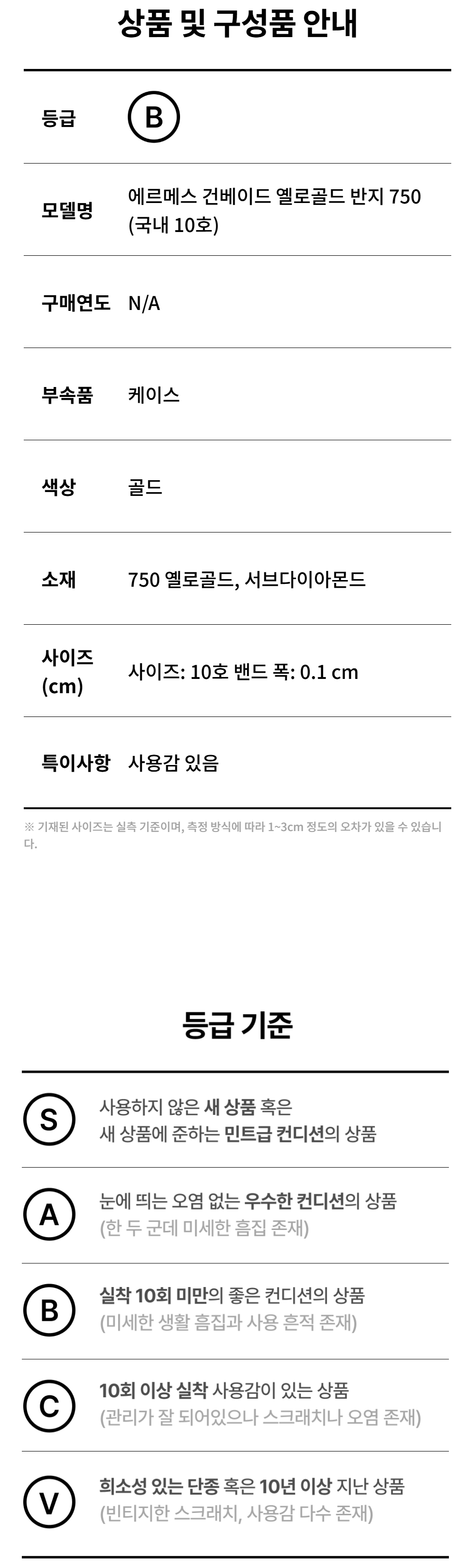 에르메스 건베이드 옐로골드 반지 750 (국내 10호)