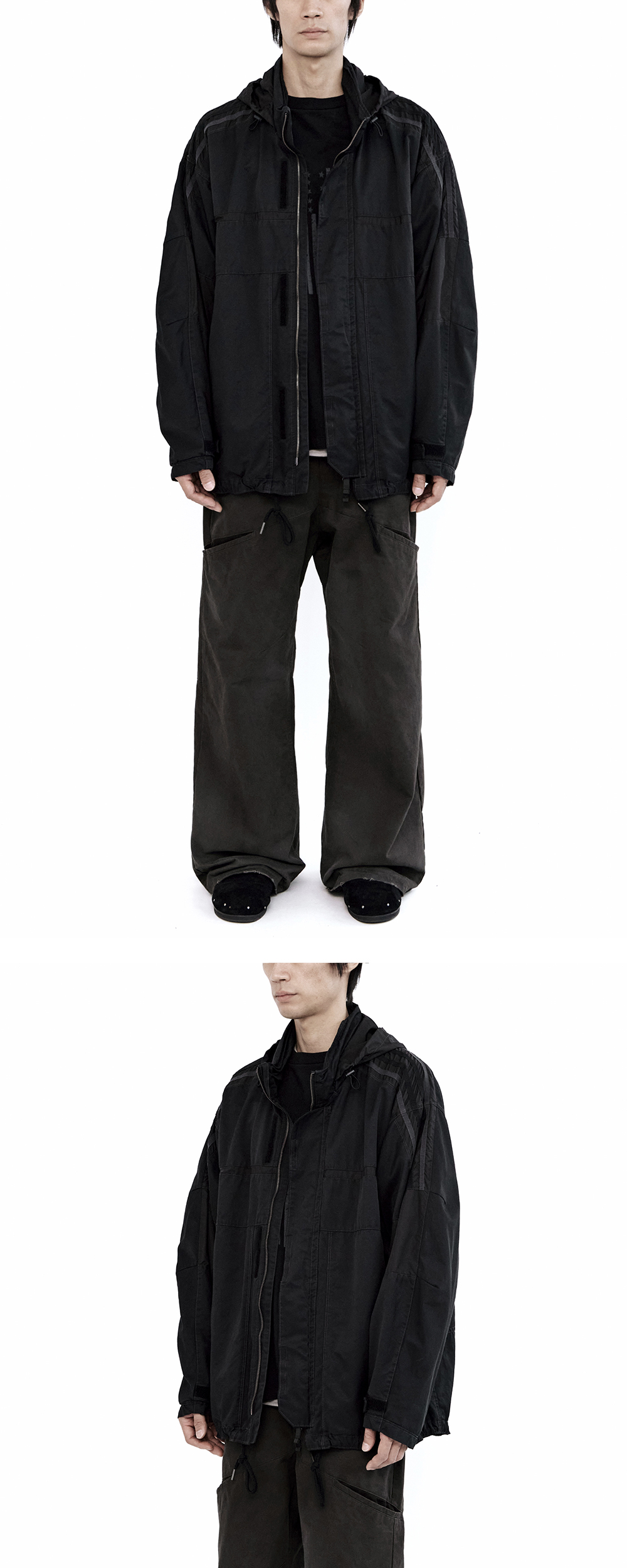 본 제품은 완성 후 후염 및 데미지 가공을 거친 제품으로, 해당 공정이 수작업으로 진행되는 특성상 개체 간 차이가 발생할 수 있습니다.