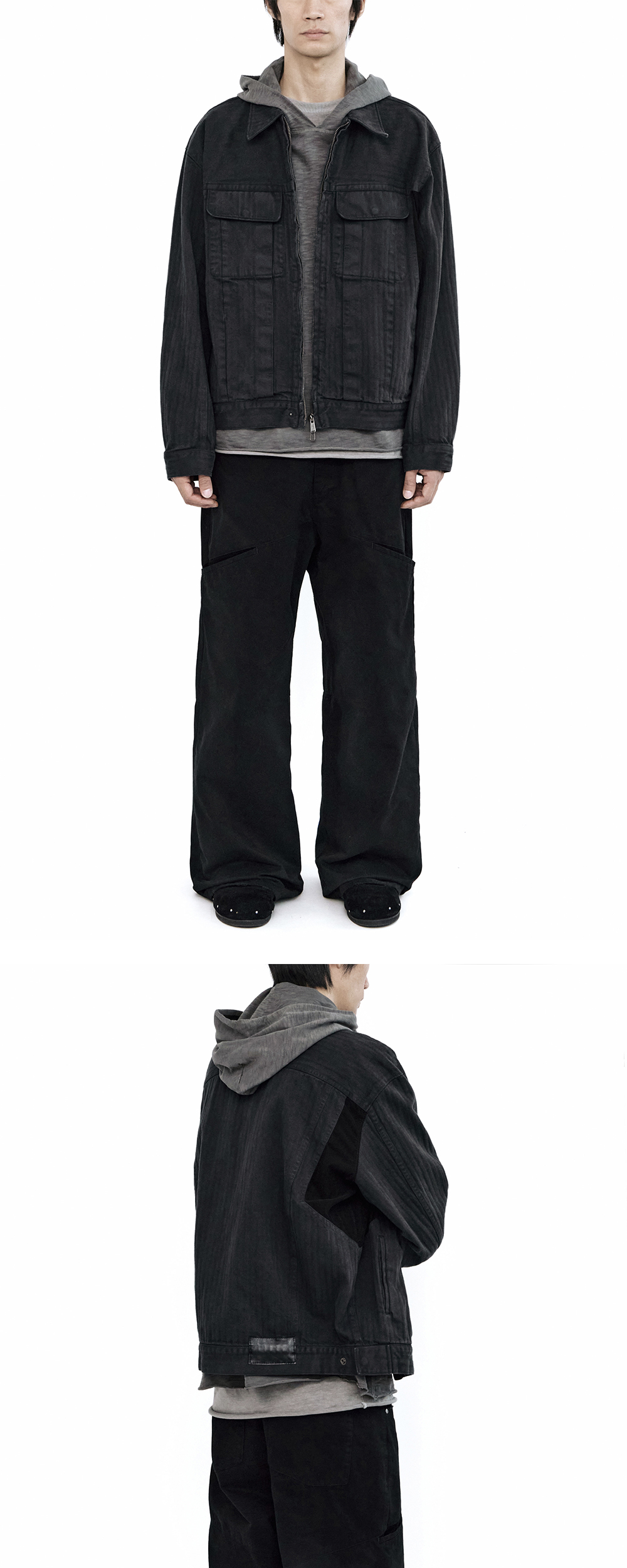 본 제품은 완성 후 후염 및 데미지 가공을 거친 제품으로, 해당 공정이 수작업으로 진행되는 특성상 개체 간 차이가 발생할 수 있습니다.