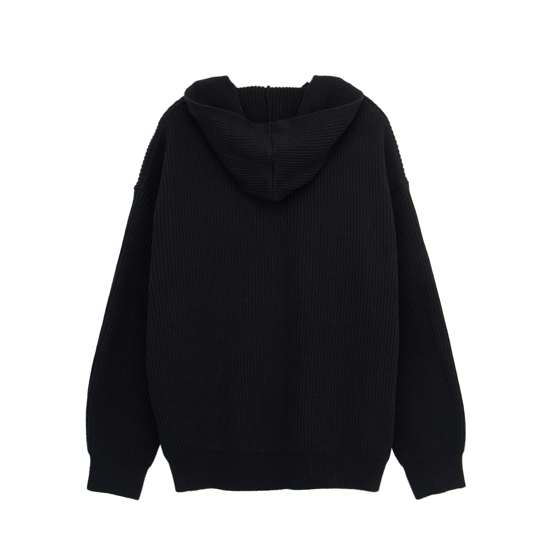 human knit hoodie - black, light gray - 벌키한 실루엣 - 루즈하게 떨어지는 핏감 - 크롭한 밸런스 - 소매 핑거홀 - 밑단 & 소매 립 *모델: 170 중반, 마른 체형 / 3사이즈 착용