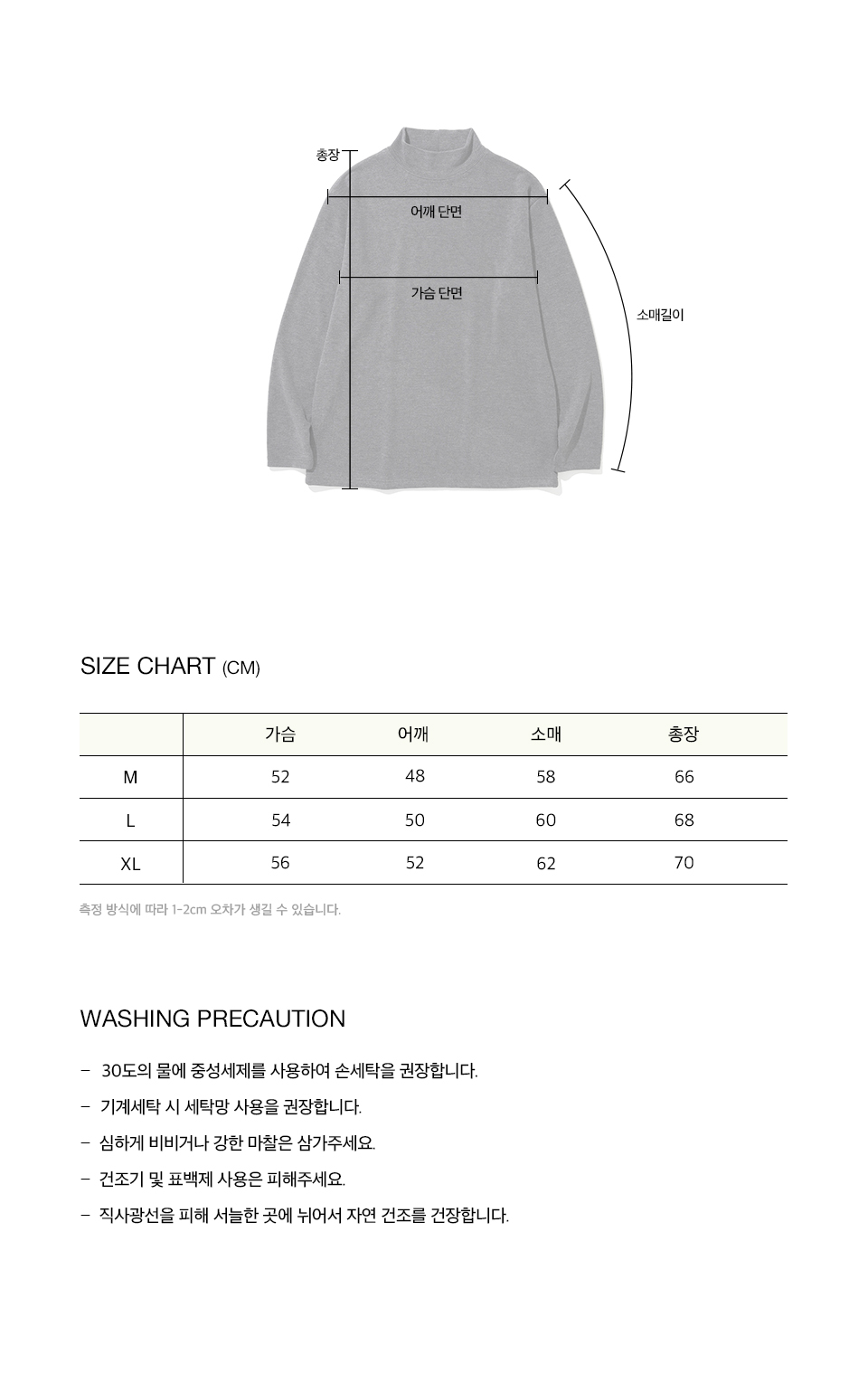 측정 방법에 따라 사이즈에 일부 오차가 있을 수 있습니다.