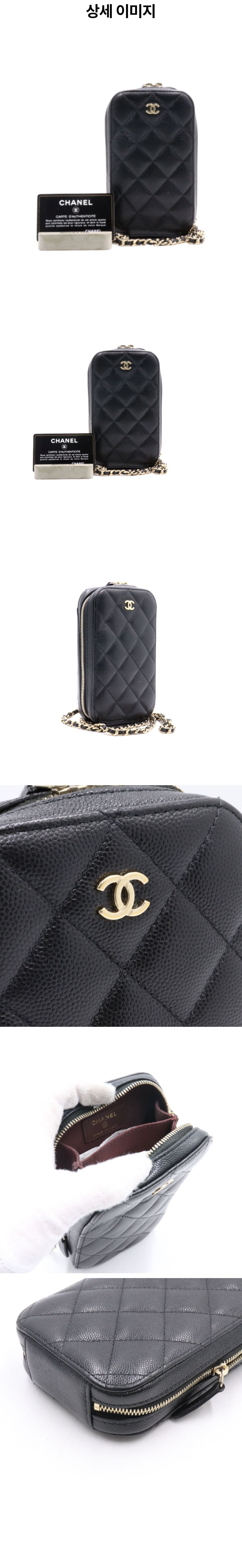 샤넬 A70655 블랙 캐비어 CC 로고 지퍼 폰 케이스 미니 금장 체인 크로스백 aa34248