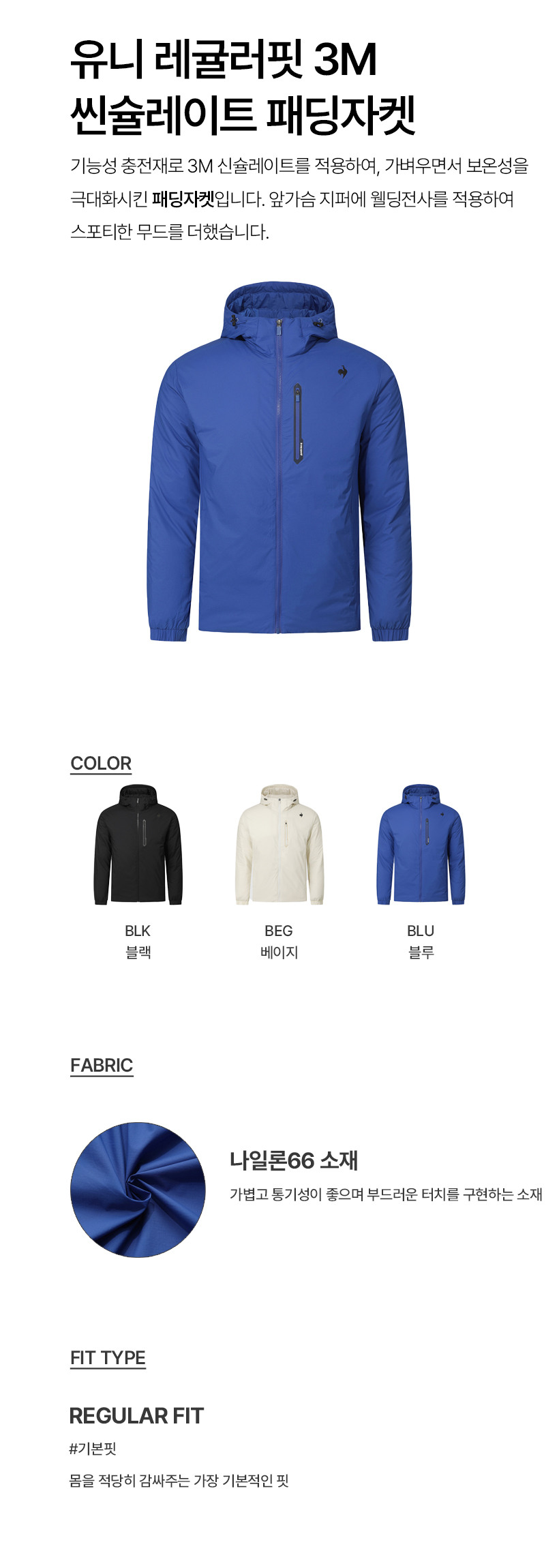 르꼬끄 스포르티브 유니 레귤러핏 3M 씬슐레이트 패딩자켓 - 블루 QQ423EPDO1