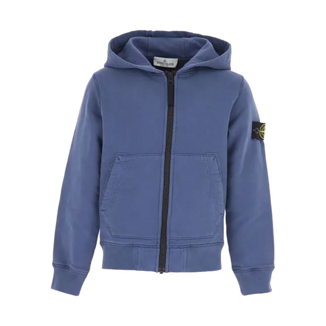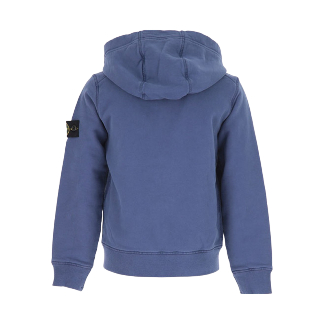 (Kids) Stone Island 60740 Cotton Fleece Full Zip Hooded Sweatshirt Royal Blue - 21FW