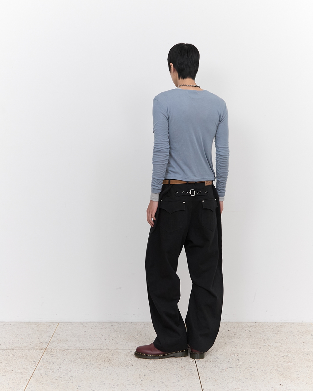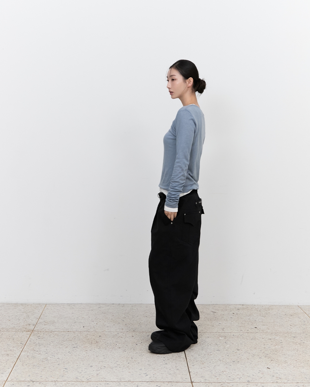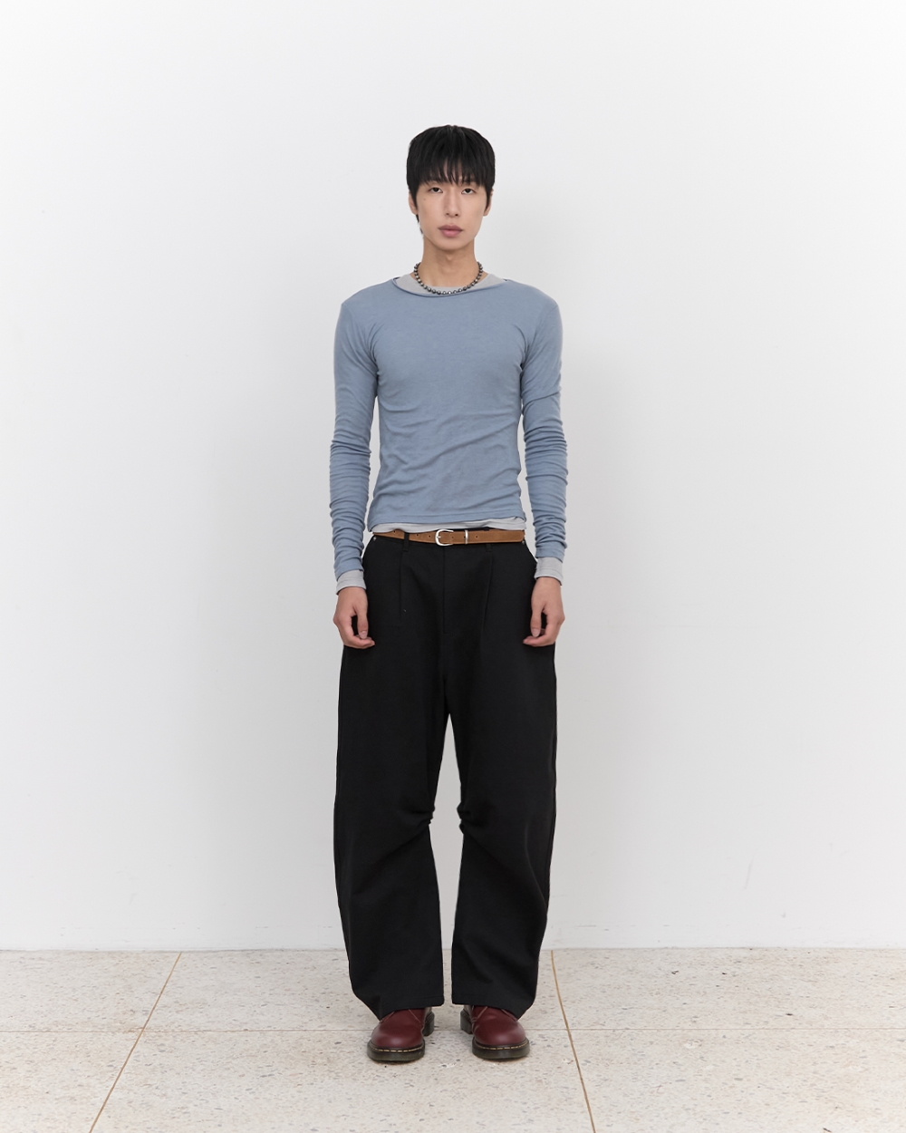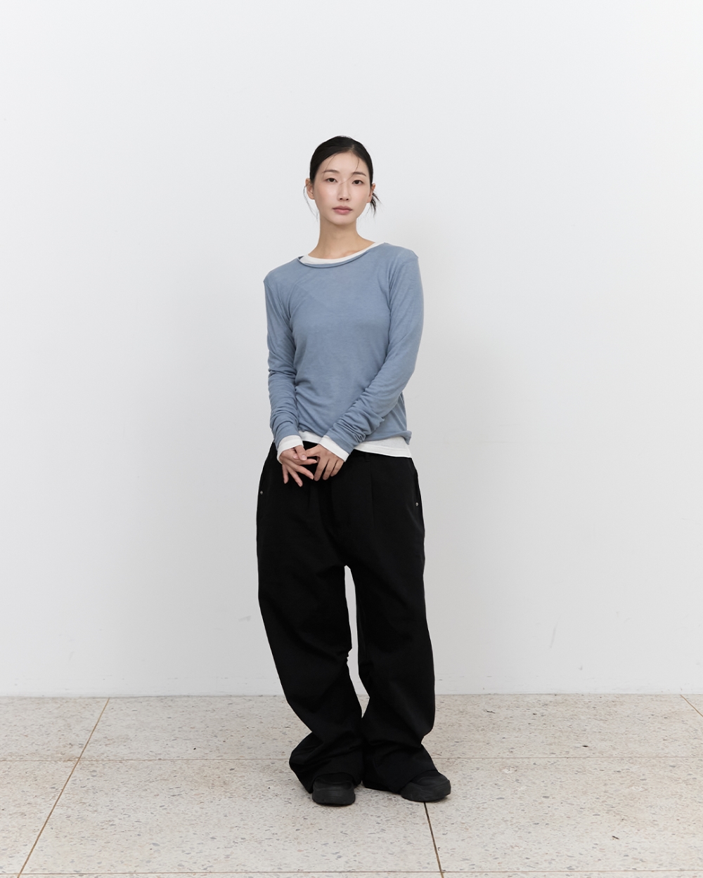 블루 선플라워 레이어드 롱슬리브 티셔츠 블루