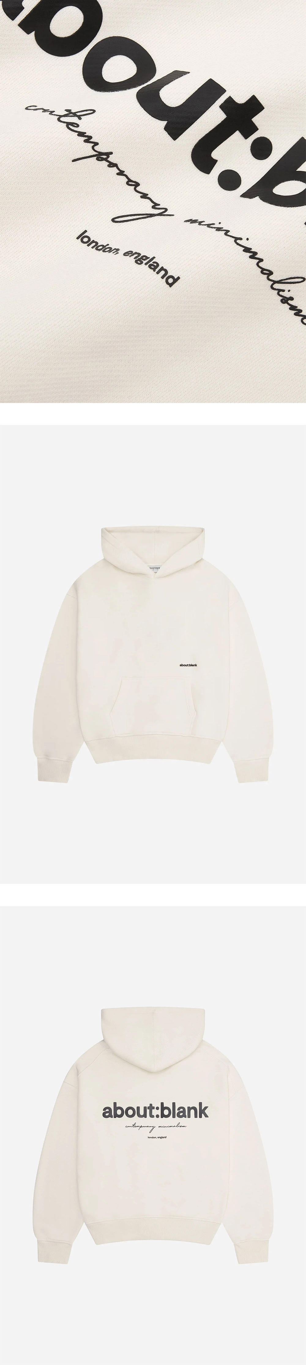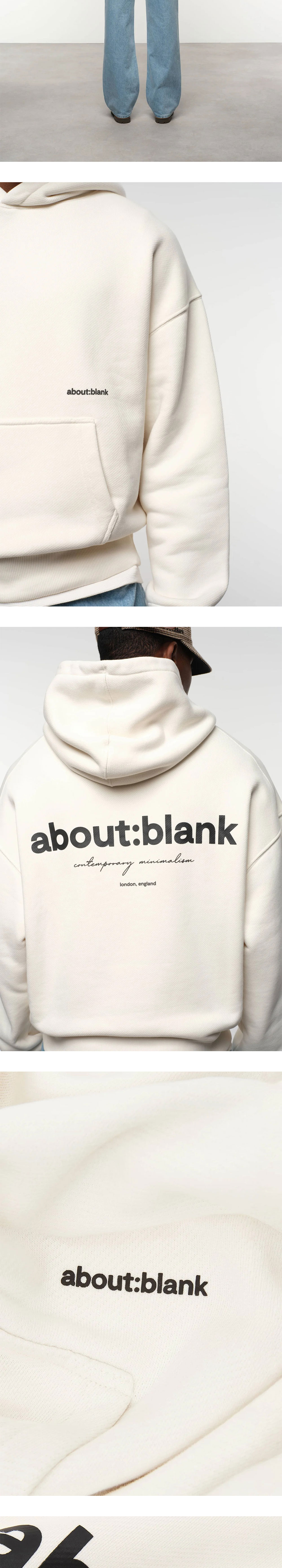 어바웃 블랭크 박스 후디 에크루 블랙입니다. - 545gsm 헤비웨이트 코튼 후디 - 탄탄한 프렌치테리(Loopback) 원단 - 실리콘 워싱 처리로 완성된 부드러운 터치감 - 후드 앞면이 겹쳐진 크로스오버 디자인 - 크롭 기장의 박시 핏 - 전면·후면 볼륨감 있는 로고 프린팅