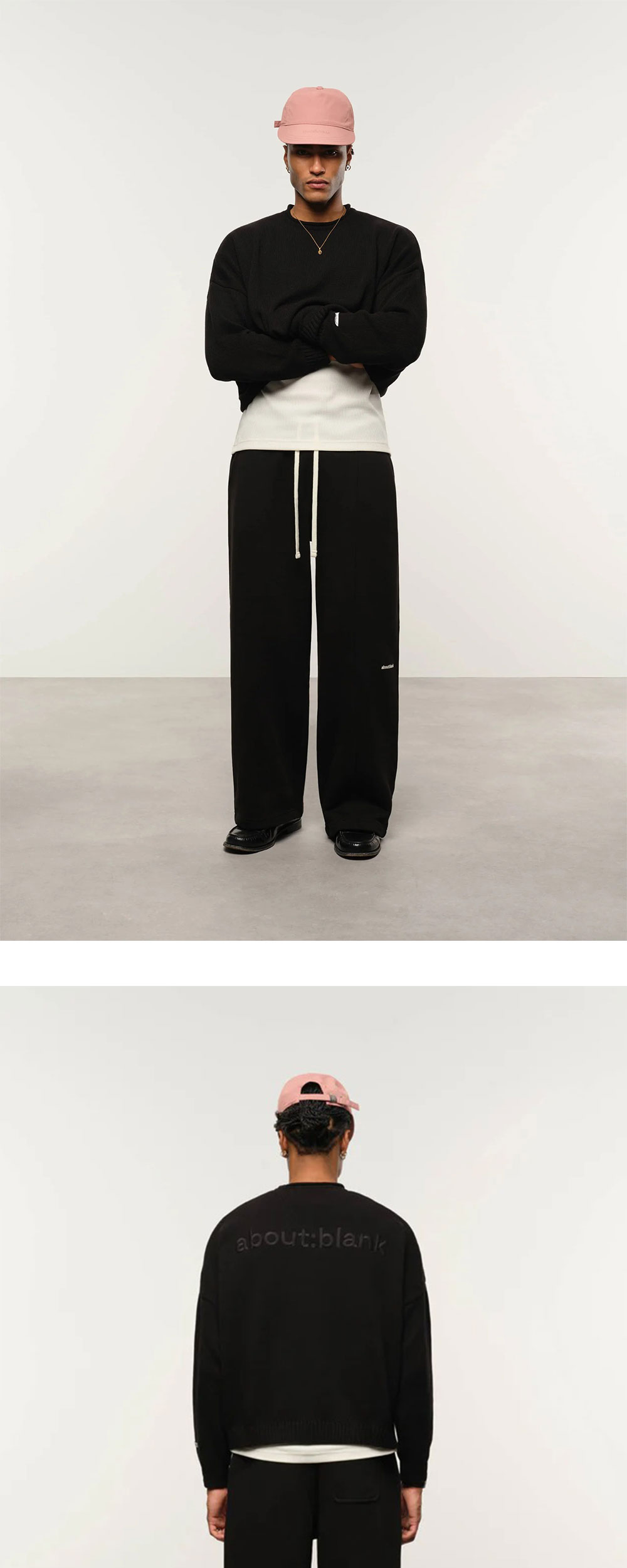 어바웃 블랭크 플리츠 스웨트팬츠 블랙 에크루 - 26SS