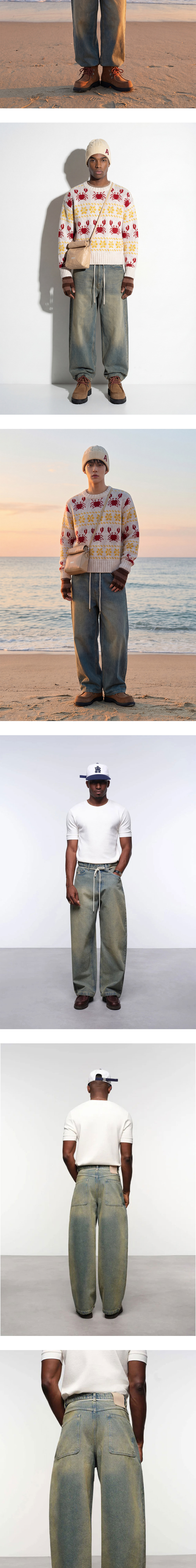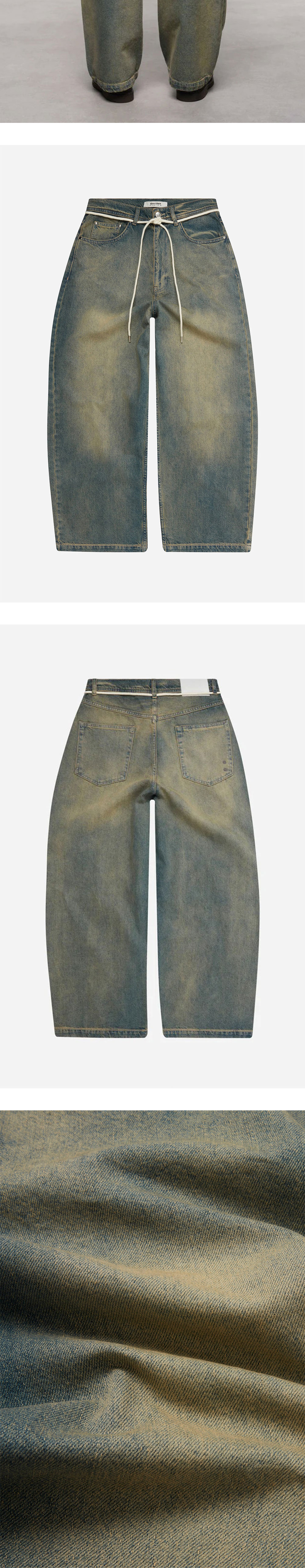 어바웃 블랭크 와이드 레그 데님 더티 블루 워시입니다. - 드레이프를 살린 새로운 와이드 레그 실루엣 - 고유한 샌드블라스팅 워싱 공정 - 로고 가죽 패치 - 스트링 허리띠 ✧ AI로 제작한 콘텐츠가 포함되었습니다.