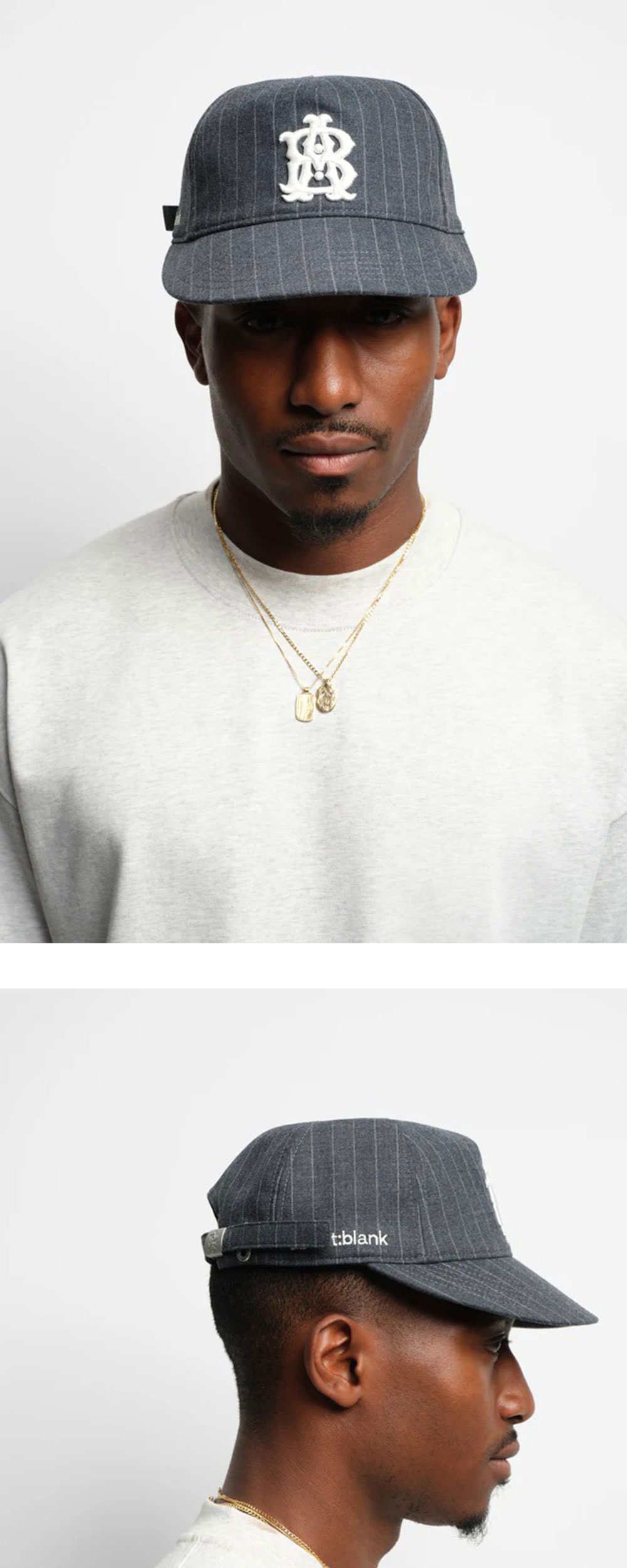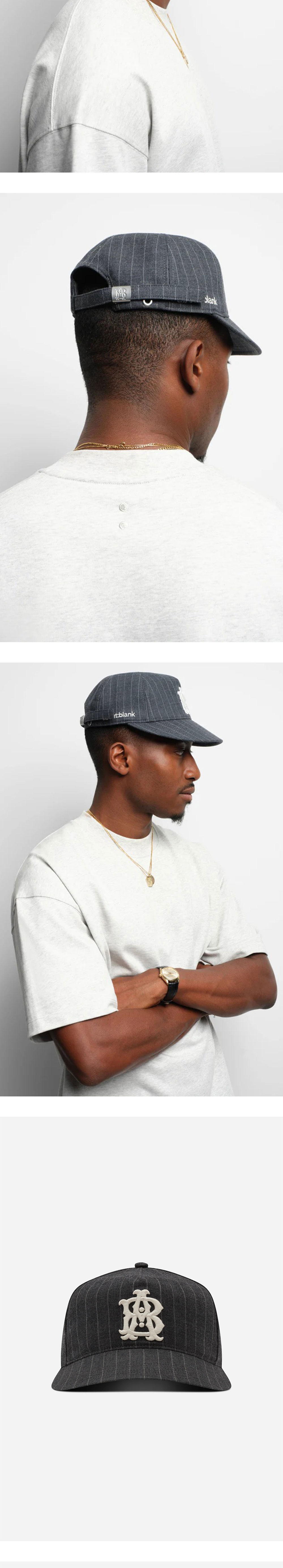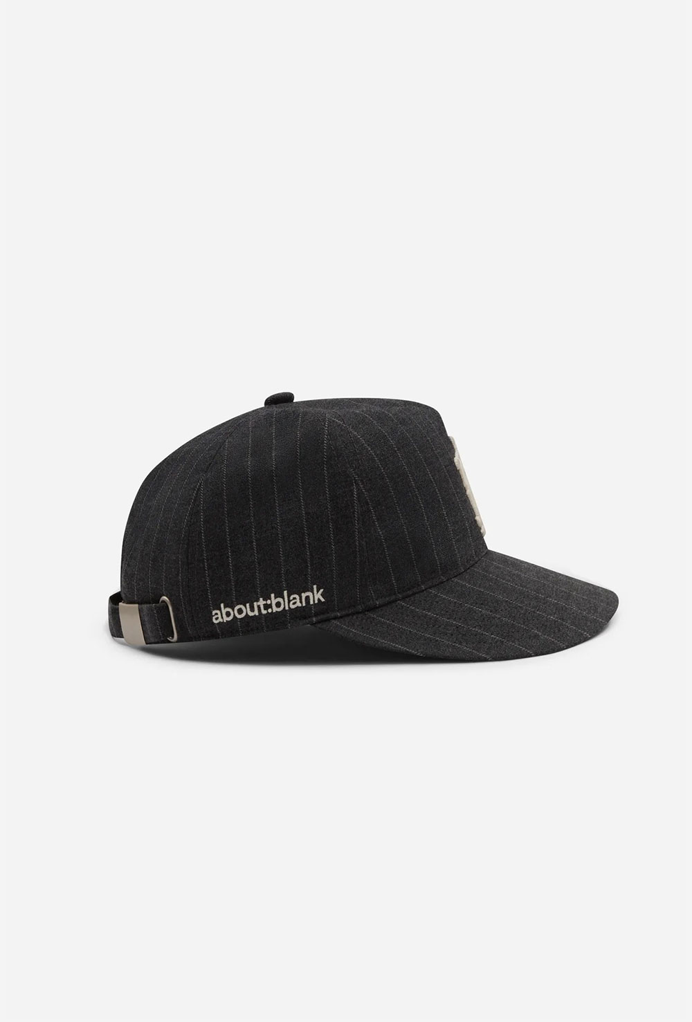 어바웃 블랭크 모노그램 핀스트라이프 캡 차콜 화이트입니다. - 넓은 챙과 뾰족한 모자 형태 - 간편한 사이즈 조절을 위한 금속 잠금 장치 - 울 혼방 소재 - 3D 모노그램 자수 - 핀스트라이프