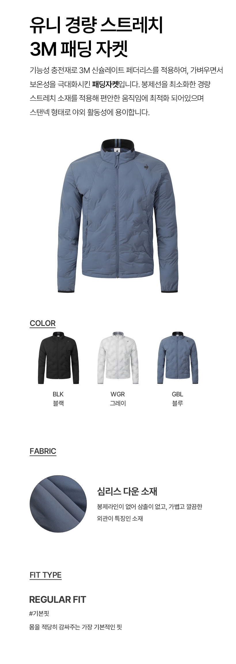르꼬끄 스포르티브 유니 경량 스트레치 3M 패딩 자켓 - 블랙 QQ423EPDO4