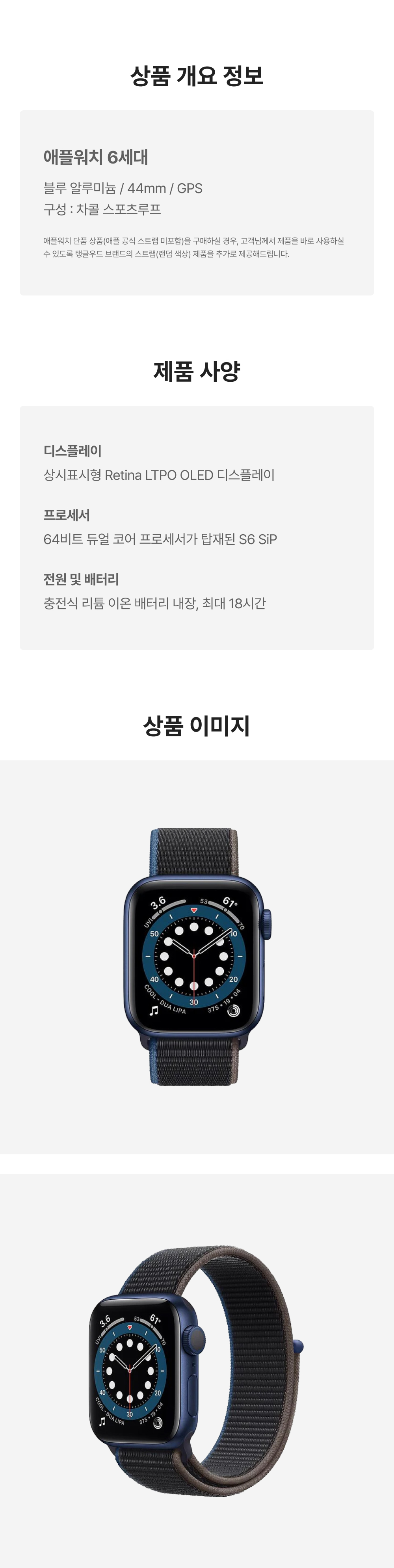 [S등급] 리퍼비시 애플워치 6 44mm GPS 블루 알루미늄 케이스 스포츠 루프 차콜