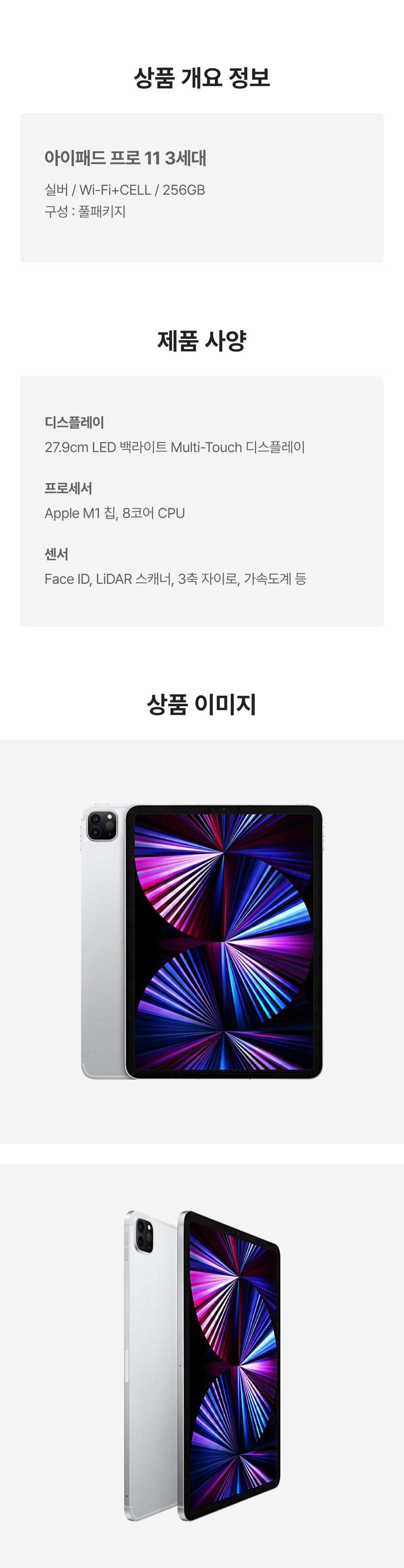 [A등급] 리퍼비시 아이패드 프로 11 3세대 wifi+cellular Apple M1 128기가 실버