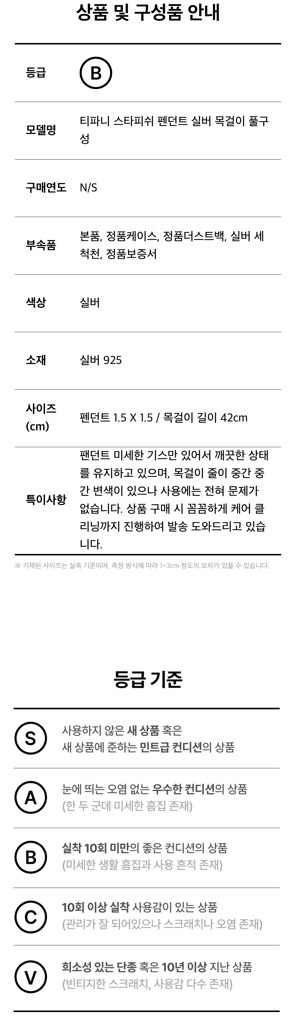 티파니앤코 스타피쉬 펜던트 실버 목걸이 풀구성 No. 92