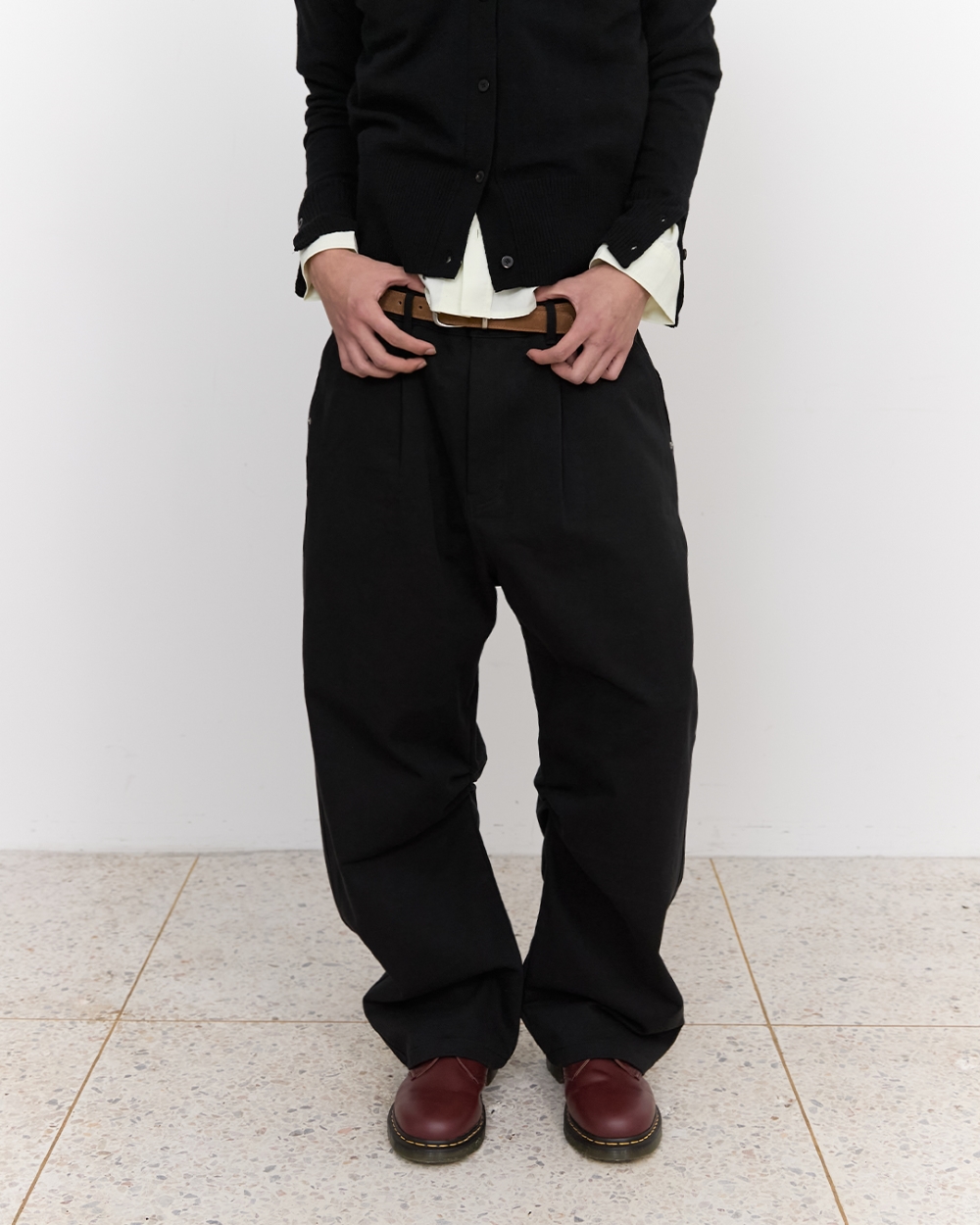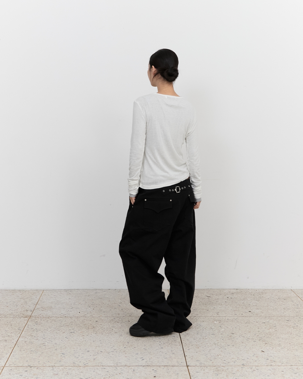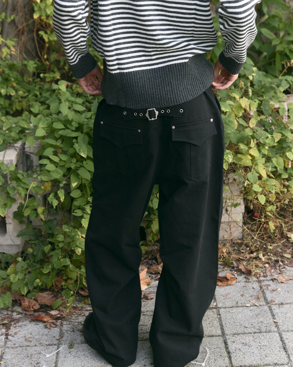 블루 선플라워 커브드 헤리티지 신치백 팬츠 블랙