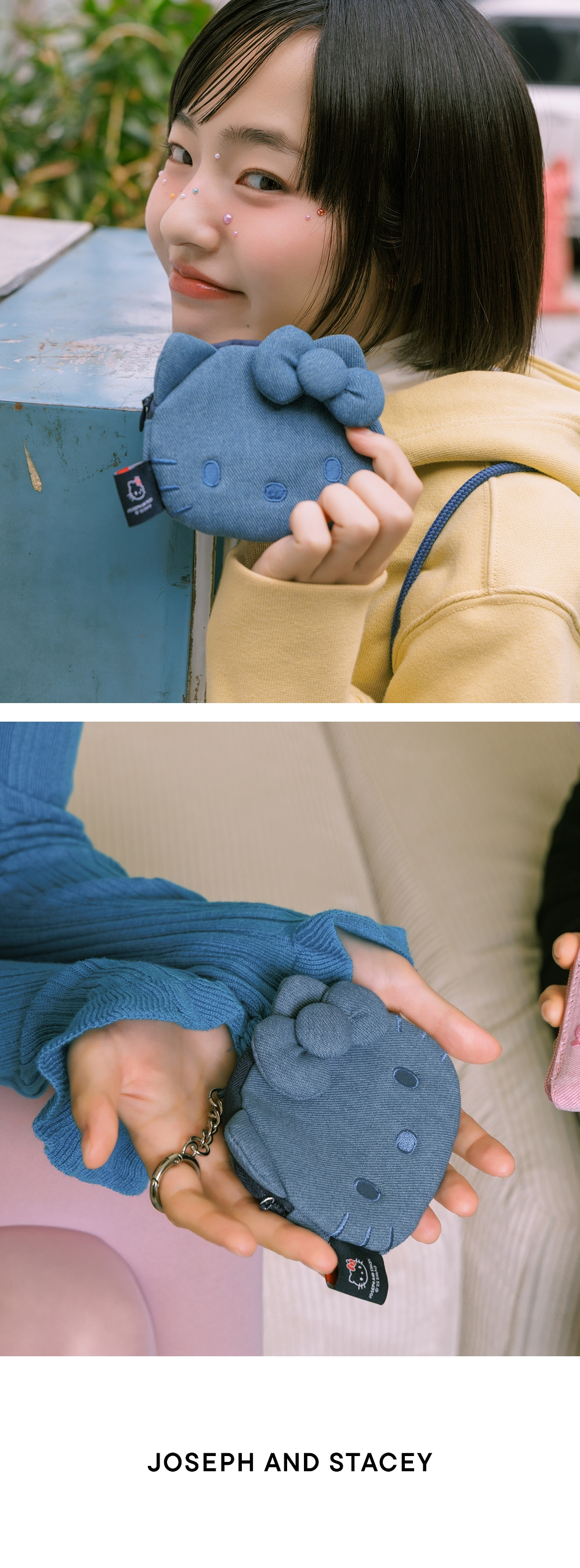 조셉앤스테이시 데님 미니 파우치 헬로키티 워시드 블루