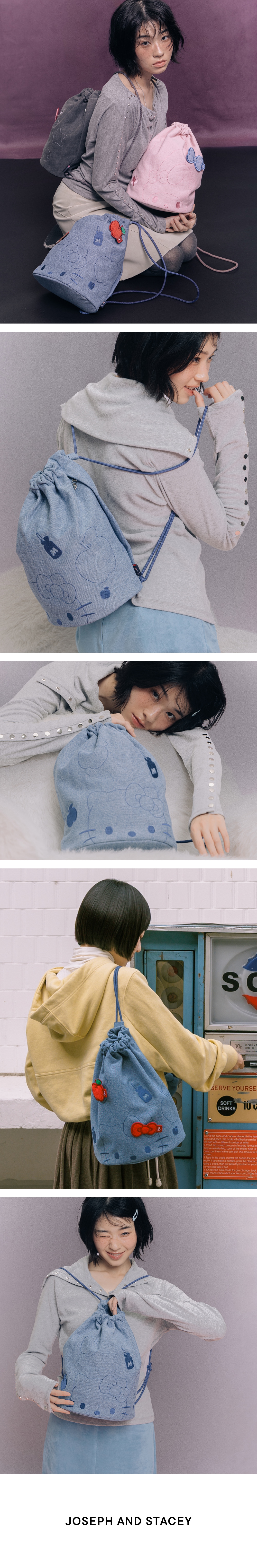 Joseph&Stacey Denim String Backpack Hello Kitty Washed Blue
