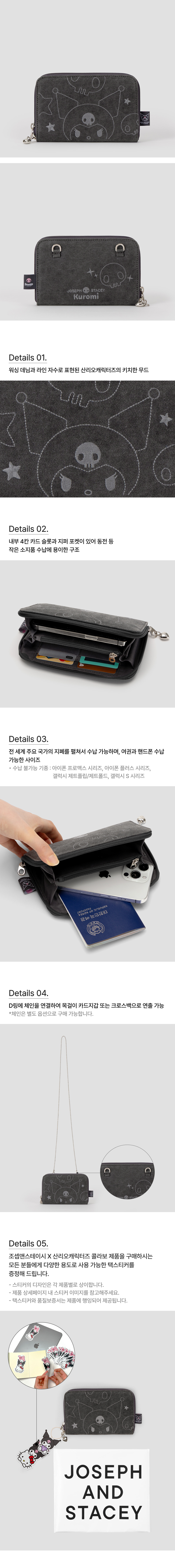 [사은품 증정] Joseph&Stacey Denim Travel Cross Wallet Kuromi Washed Charcoal