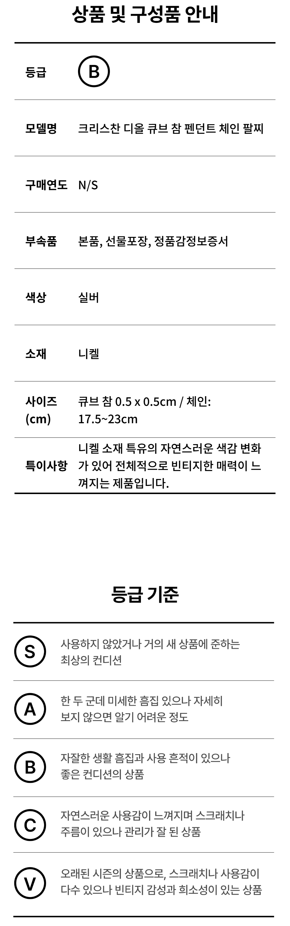 크리스찬 디올 큐브 참 펜던트 체인 팔찌 No. 117